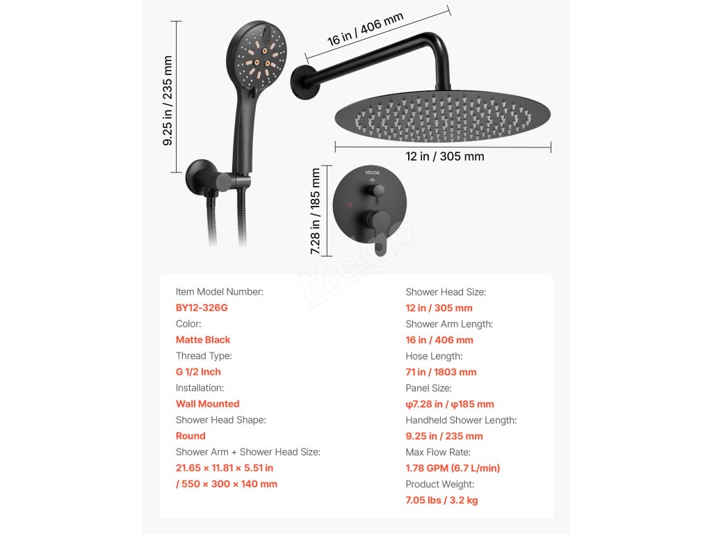 | Veľkosť sprchovej hlavice | 12 palcov/305 mm |