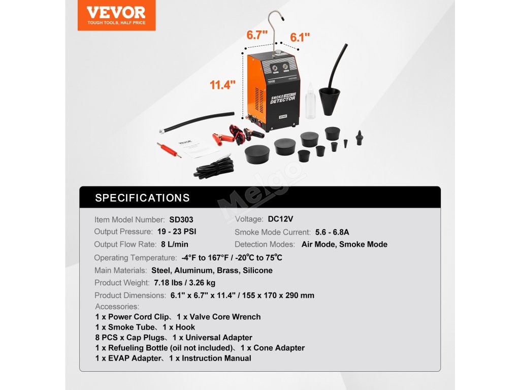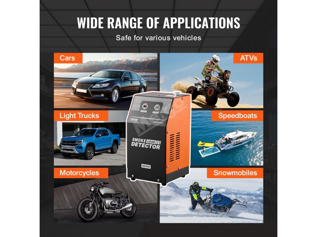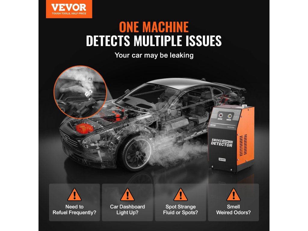 Automobilový kouřový přístroj VEVOR je dokonalým pomocníkem při testování těsnosti! Ať už se jedná o systém EVAP, systém palivové nádrže, výfukový a sací systém nebo test těsnosti vozidla, tento přístroj zvládne vše. Je ideální pro osobní automobily, motocykly, sněžné skútry, čtyřkolky, lehké nákladní automobily - snadno pokryje diagnostické potřeby.