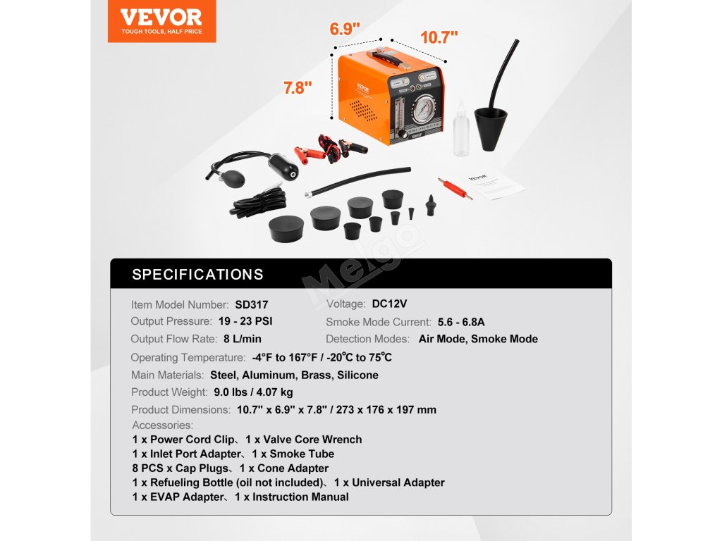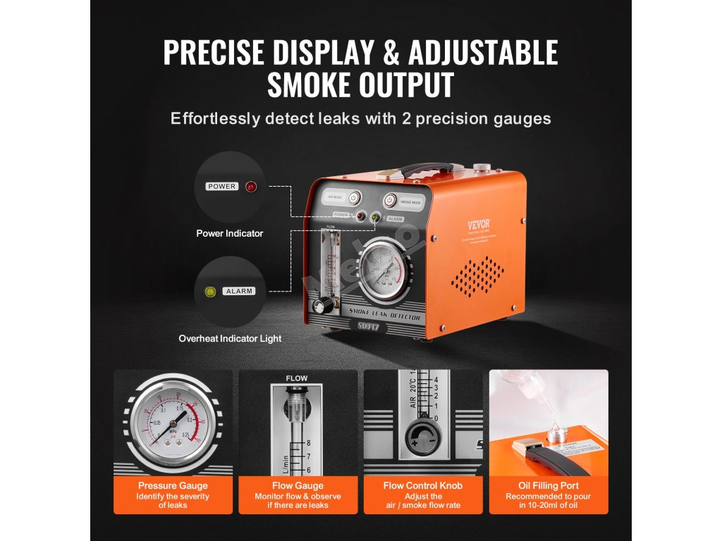 Nejlepší společník pro testování těsnosti! Automobilový kouřový přístroj VEVOR je navržen tak, aby zvládl různé diagnostické úkoly. Tento přístroj je ideální pro osobní automobily, motocykly, čtyřkolky a lehká nákladní vozidla a snadno pokryje vaše diagnostické potřeby.