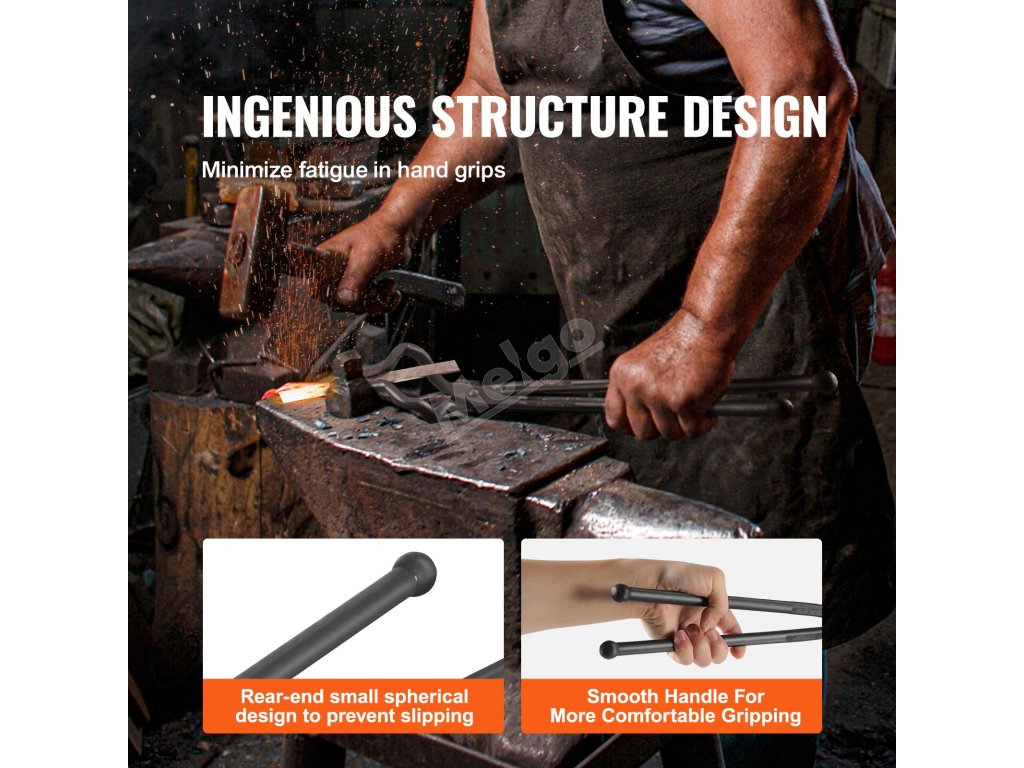 Při používání těchto kovářských kleští pocítíte pohodlný úchop, který snižuje únavu. Jsou lehké a snadno se drží i při delším používání. Malý kulatý design zabraňuje vyklouznutí při úderech, zatímco hladký tvar rukojeti nabízí pohodlný úchop.