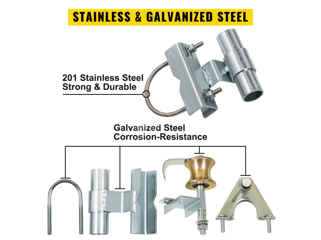 S touto sadou rolovací brány bude mít vaše rolovací brána dlouhou životnost. Šest svorek ve tvaru U je vyrobeno z nerezové oceli 201 a všechny ostatní jsou z pozinkované oceli.