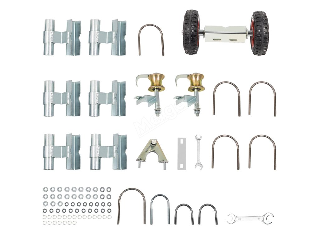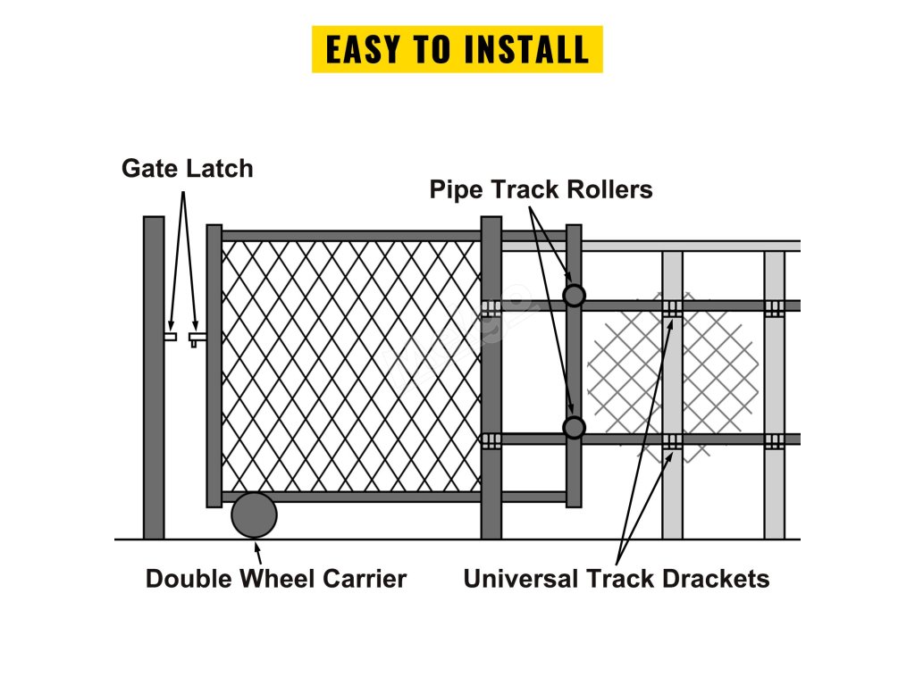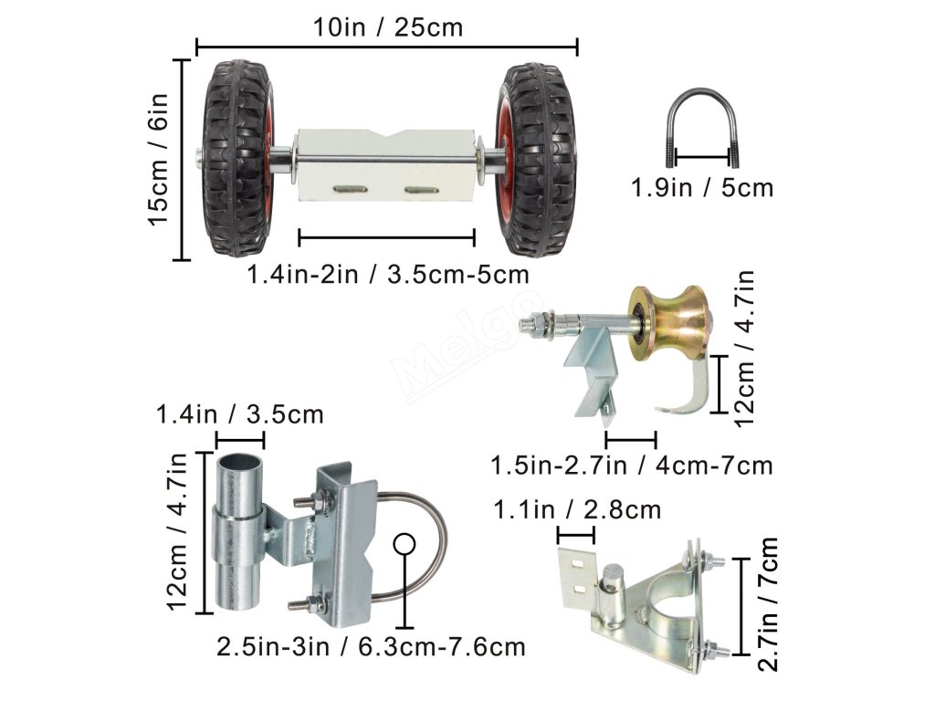 Náš balíček obsahuje veškeré příslušenství, které potřebujete k sestavení jednoduché brány, jako je dvojitý nosič kol, držáky kolejnic atd. S jejich pomocí můžete celou práci bez problémů dokončit.