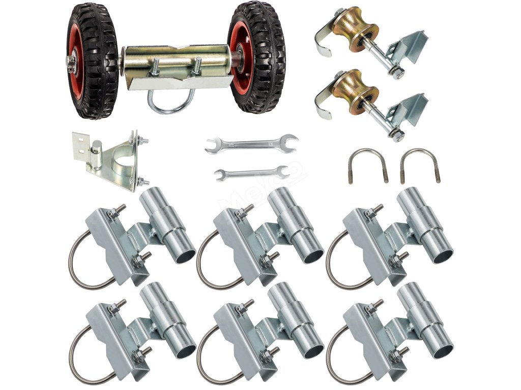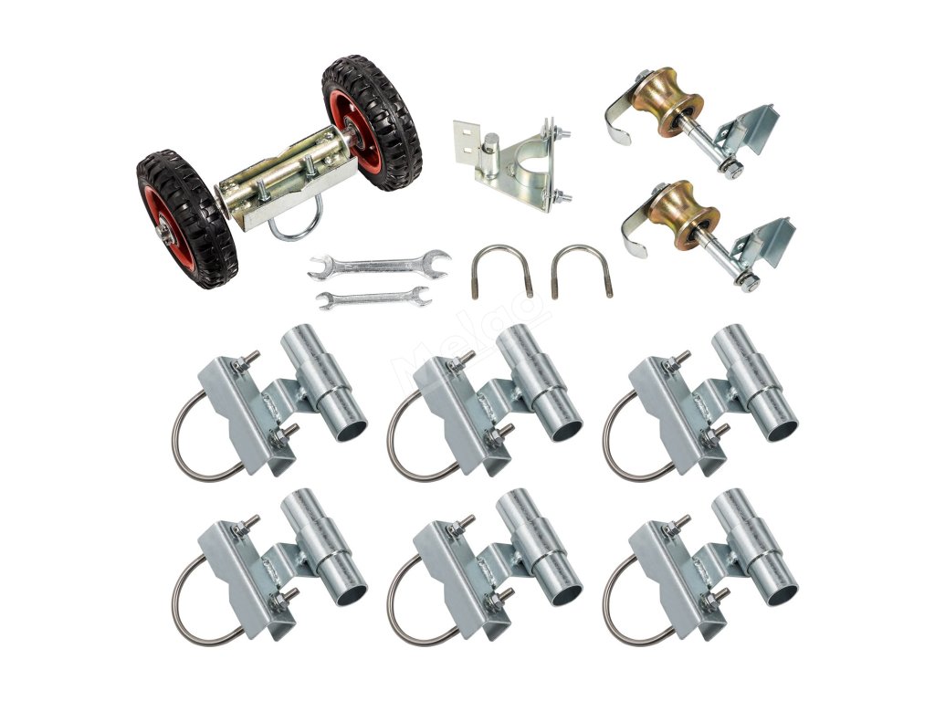 Kování posuvné brány z pletiva pozink. ocel 6 držáků 2 kolečka
