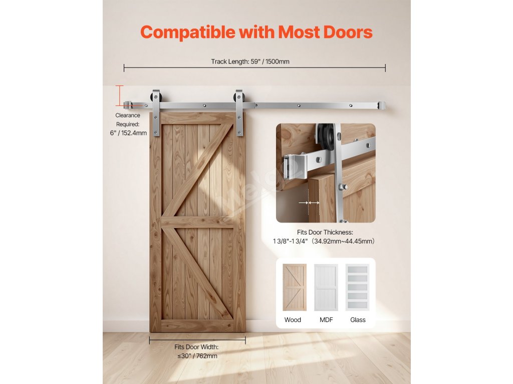 Díky veškerému potřebnému příslušenství a jasným, snadno použitelným návodům je sestavení sady kování pro posuvné dveře hračkou! Nainstalujte ji během chvilky a užívejte si stylový a funkční prostor.