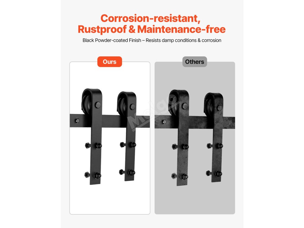 Tato sada kování pro posuvná vrata s odolnou černou práškovou povrchovou úpravou je odolná proti vlhkosti, rzi a je konstruována tak, aby odolala jakémukoli počasí - dešti, slunci i sněhu. Díky ní budou vaše vrata vypadat skvěle bez nutnosti neustálé údržby.