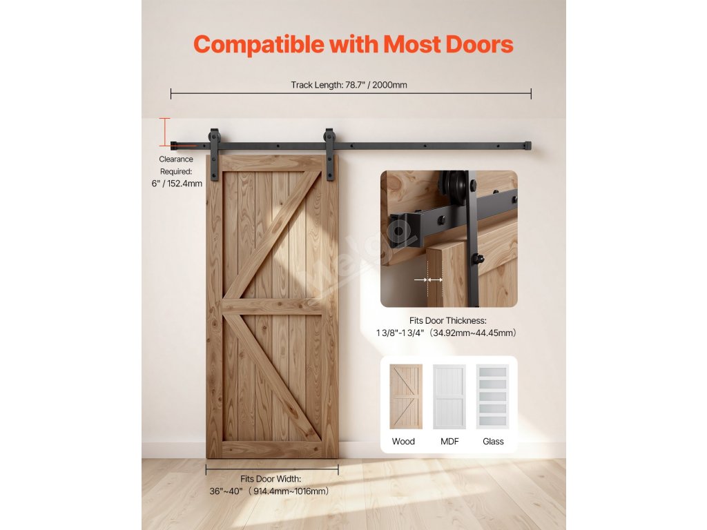 Kování posuvných dveří 6.6ft 330 lbs 36–40 inches 1-3/8–1-3/4 inches