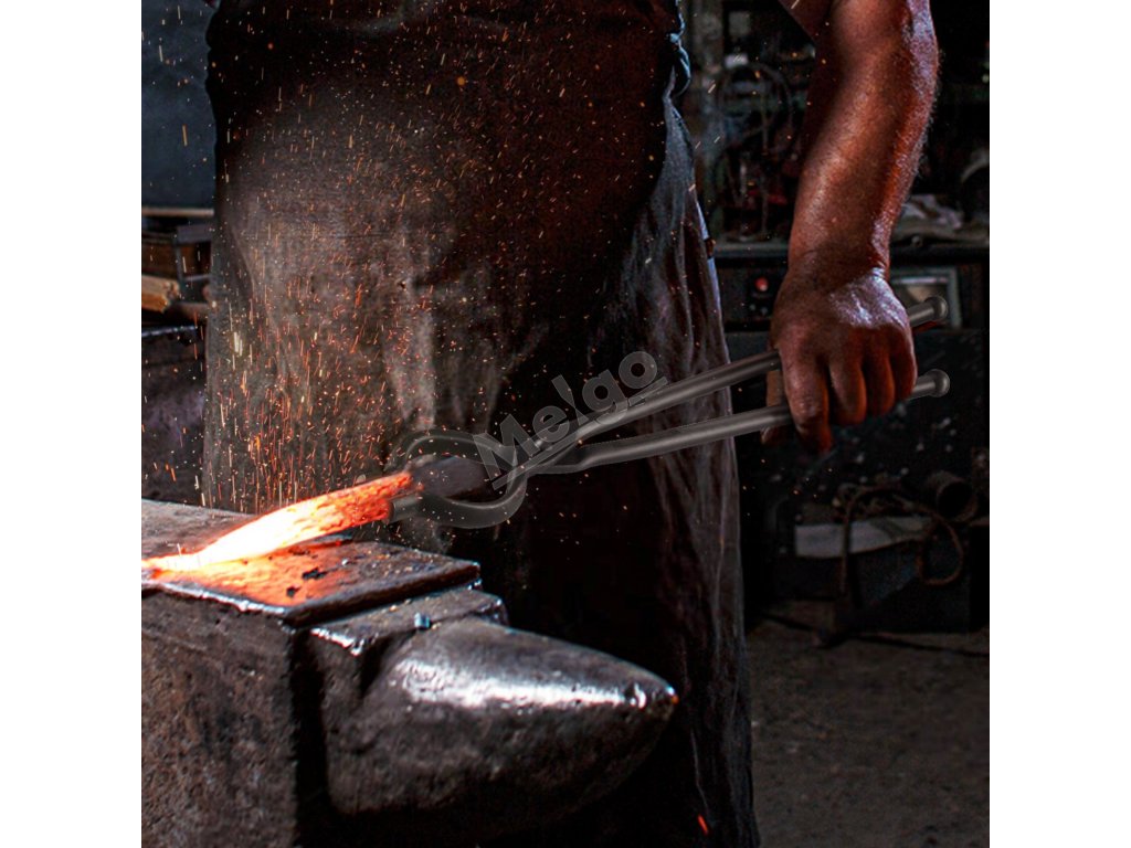 Naše kovací kleště jsou vyrobeny z vysoce kvalitních materiálů. Nýtovaná část z oceli A3 zaručuje delší životnost. Hlavní tělo je vyrobeno ze žáruvzdorné uhlíkové oceli, která zvyšuje odolnost. Povrch je navíc upraven tak, aby se zabránilo korozi.