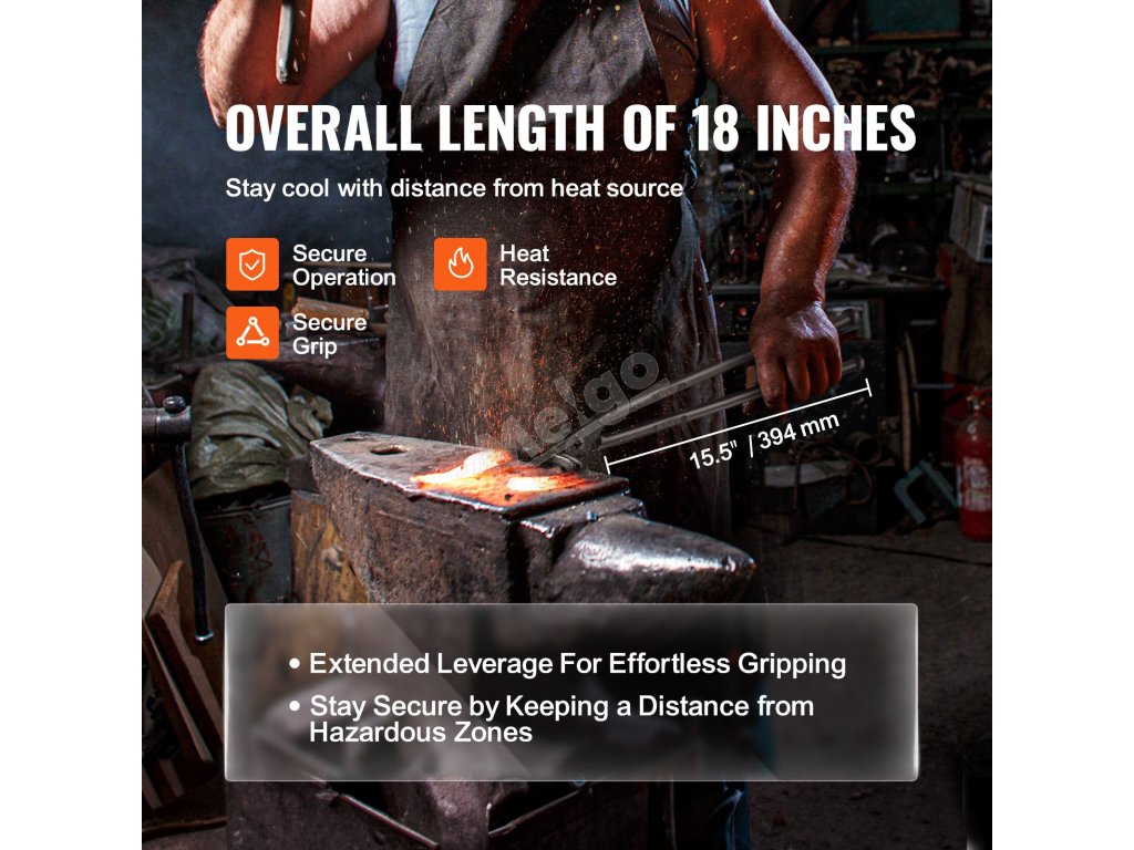 Prodloužená rukojeť našich kovacích kleští udržuje ruku uživatele mimo kovací zónu, což zvyšuje bezpečnost a pohodlí při práci.