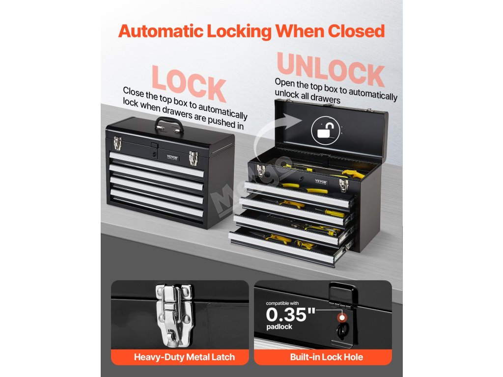 Kovová dílenská skříňka 20.5-inch, 4 zásuvky, uzamykatelná eva vložky