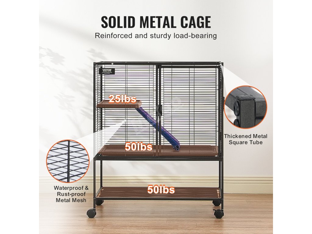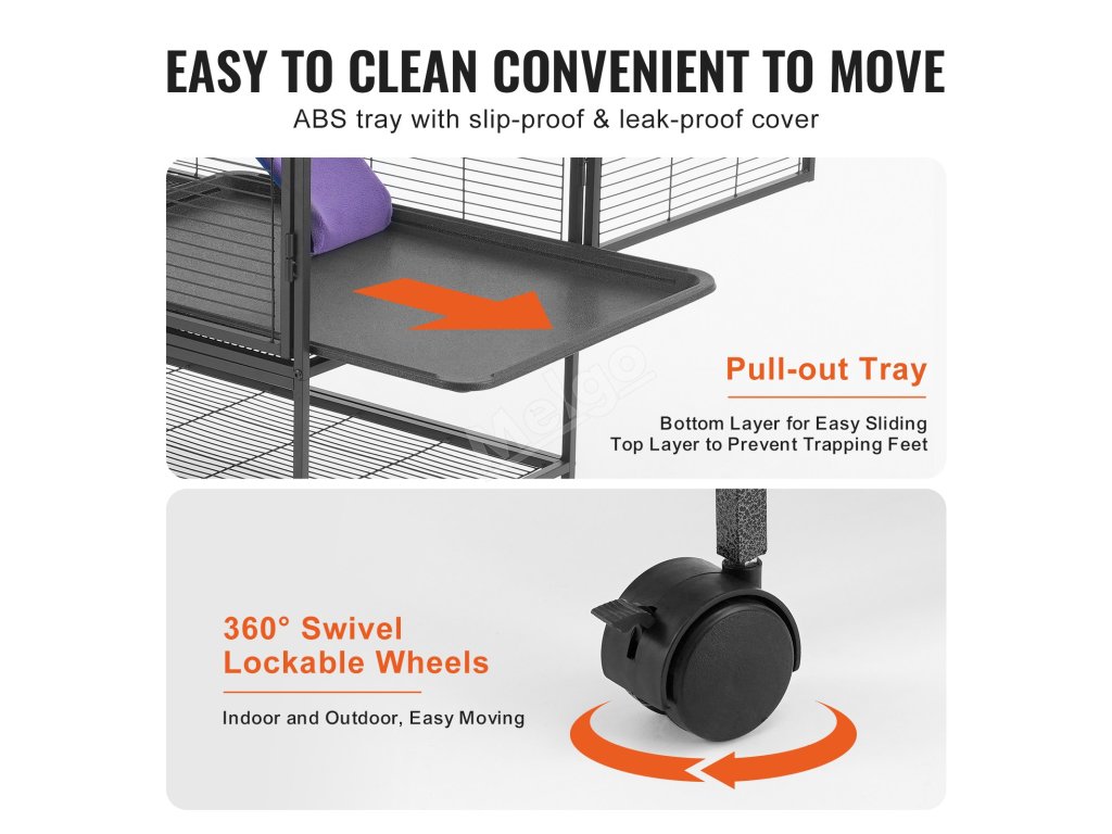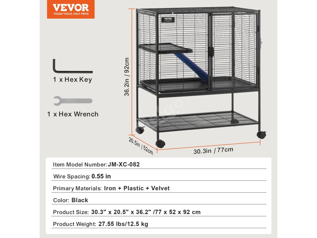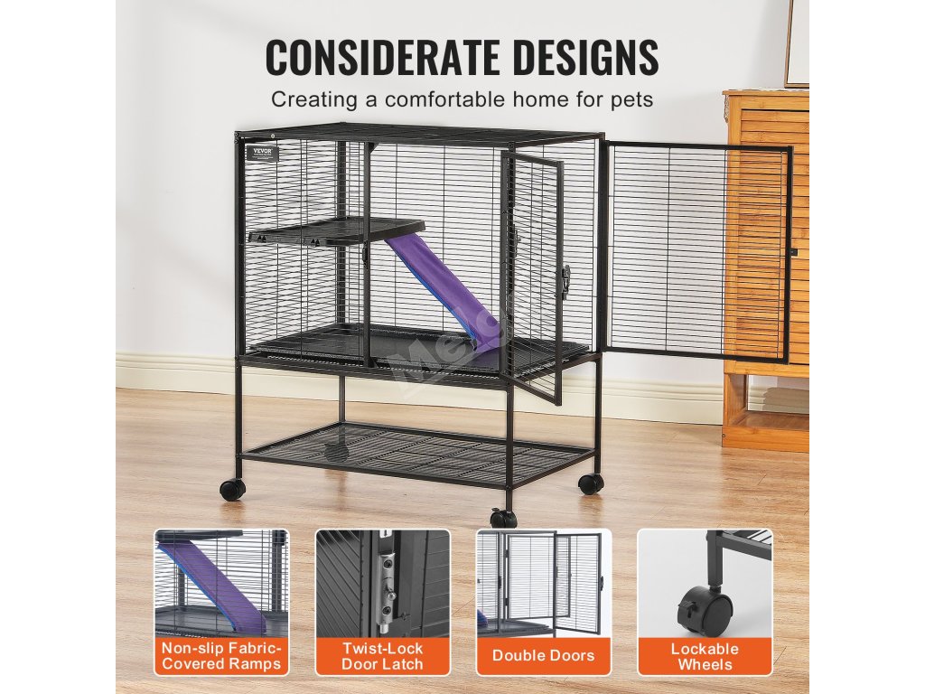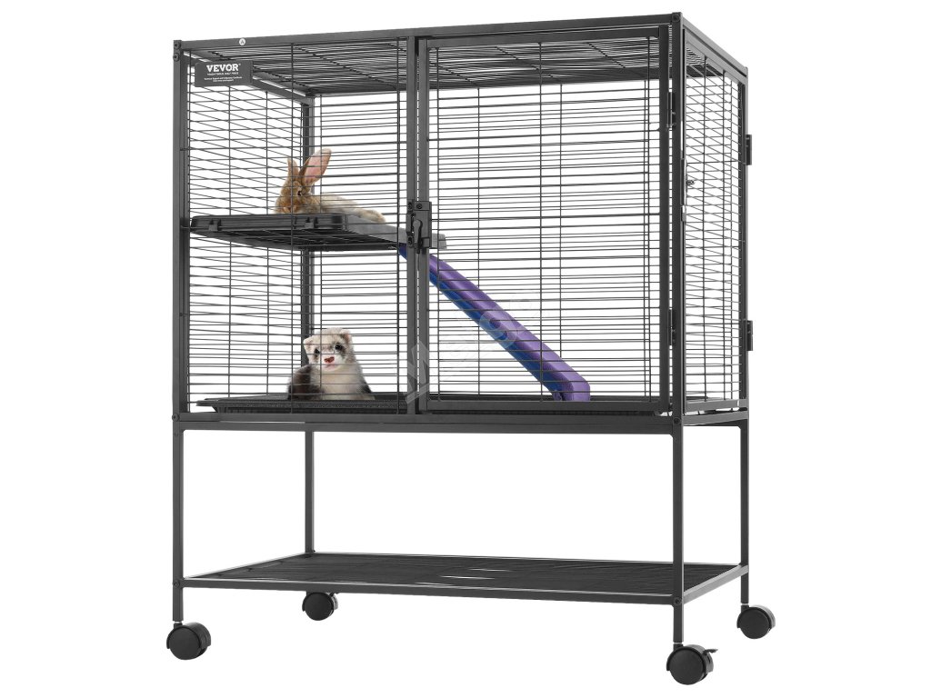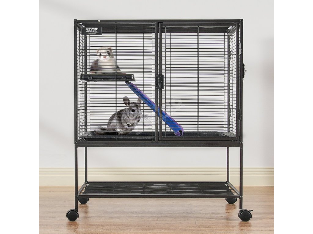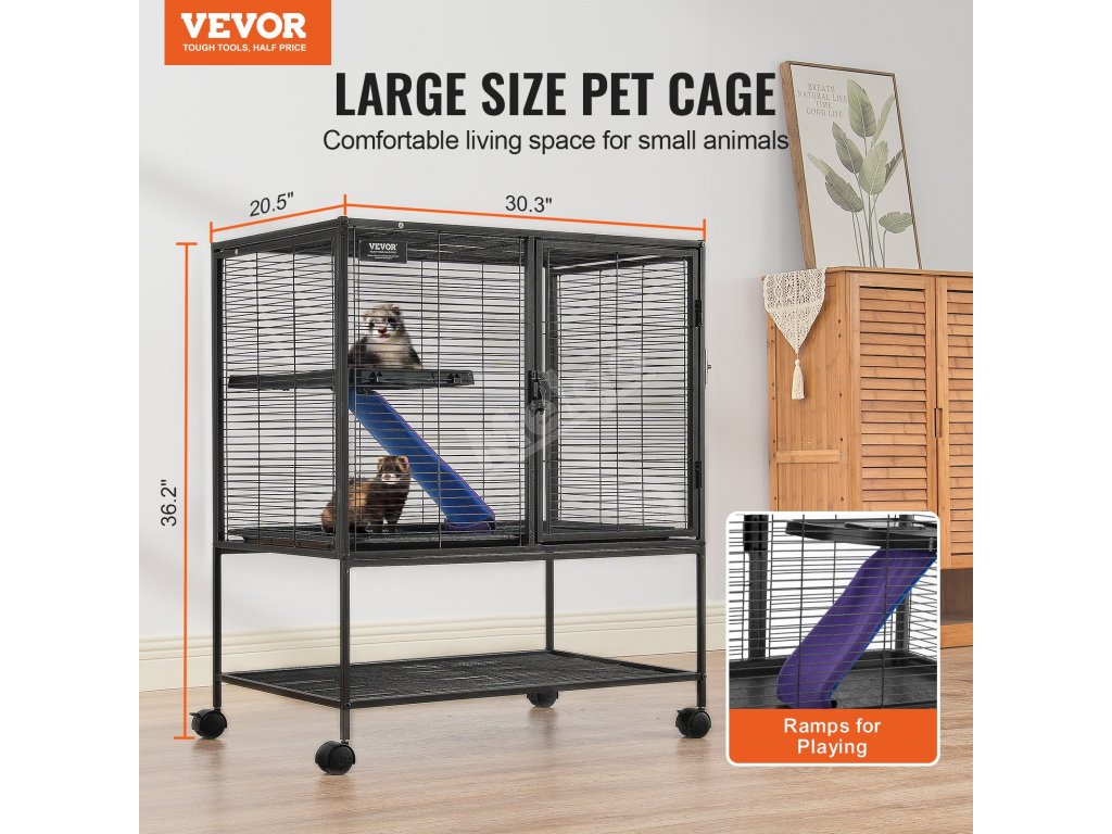 Tato prostorná klec pro domácí mazlíčky o rozměrech 30,3" x 20,5" x 36,2" má dvě plošiny v různých výškách a protiskluzovou rampu. Nabízí vašim domácím mazlíčkům dostatek životního prostoru a místa na hraní s maximálním komfortem.