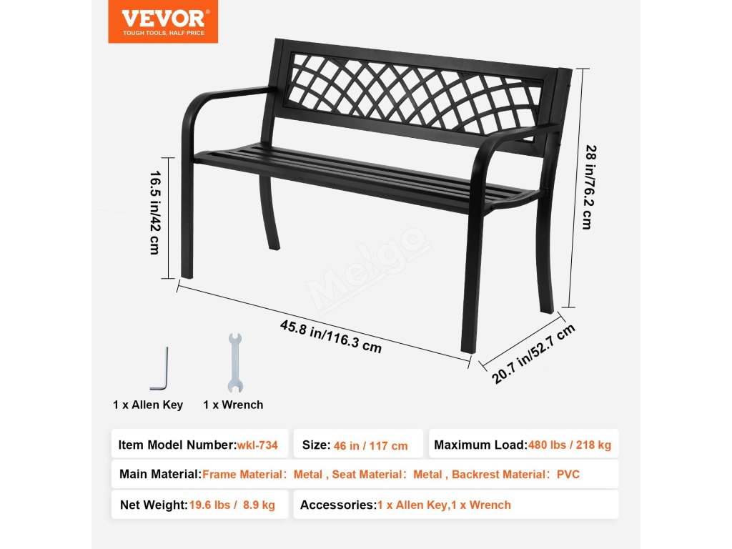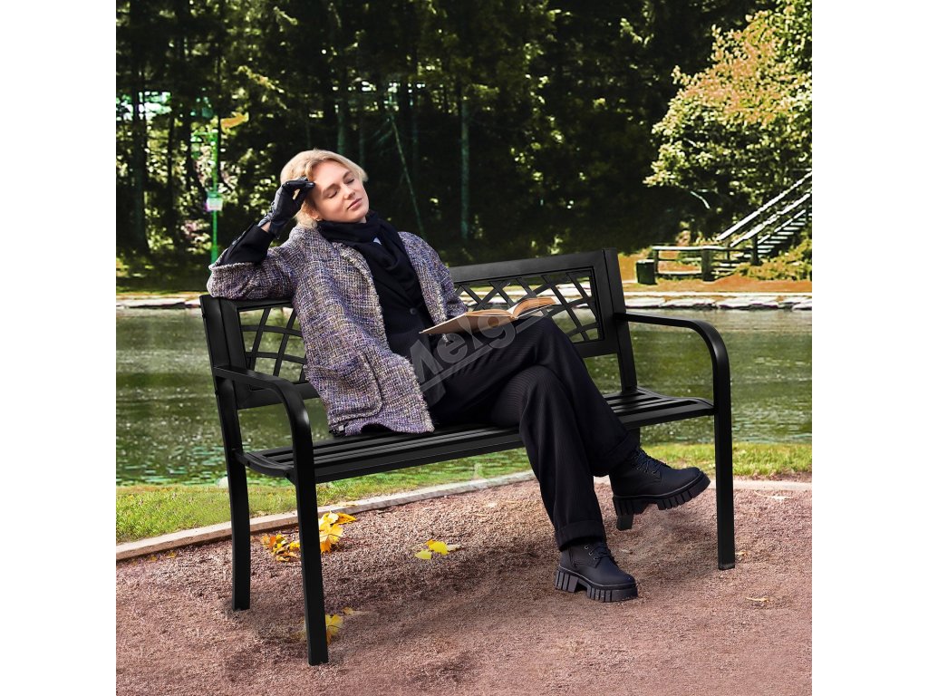 Kovová lavice 46 inches, 480 lbs nosnost, s opěradlem a područkami
