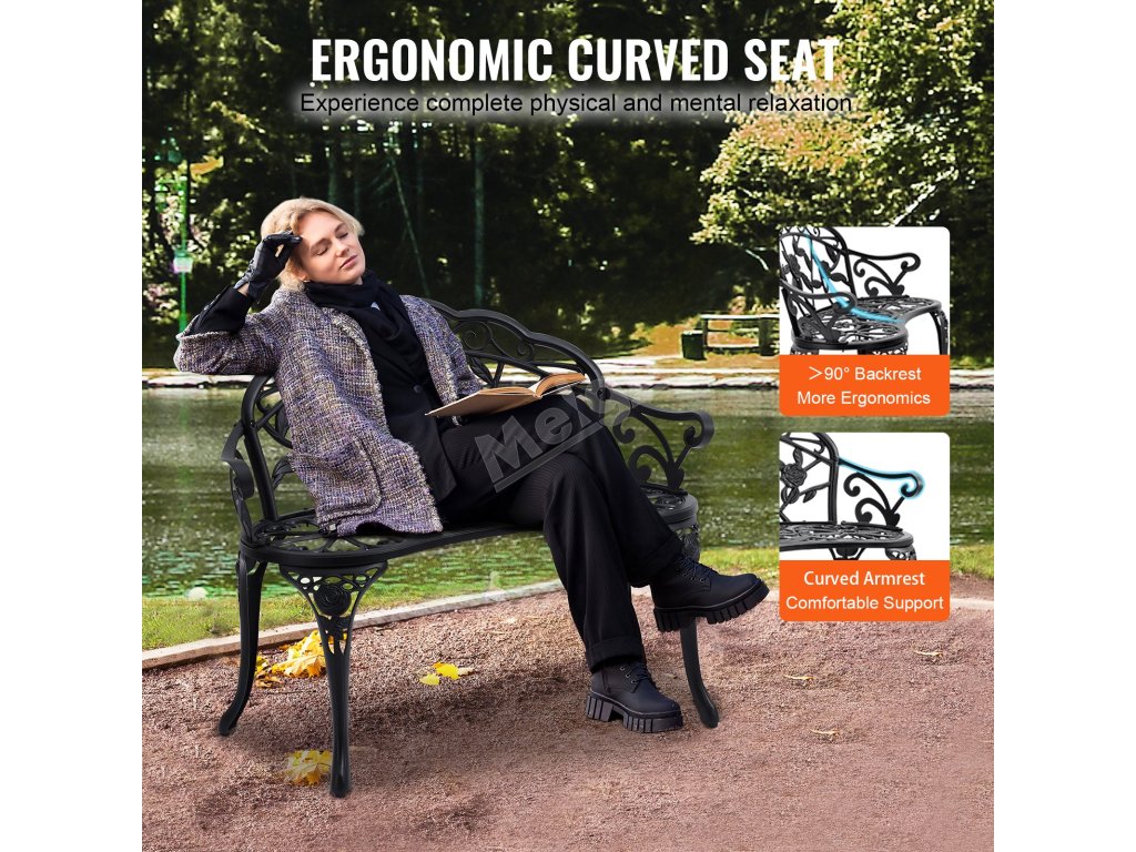 Složitě navržený květinový vzor na opěradle dodává venkovní zahradní lavičce nádech přírodní krásy. Naše lavička je ideální do zahrad, parků, na terasy nebo verandy a poskytuje vám, vaší rodině a přátelům pohodlné místo k odpočinku a sdílení krásných chvil.