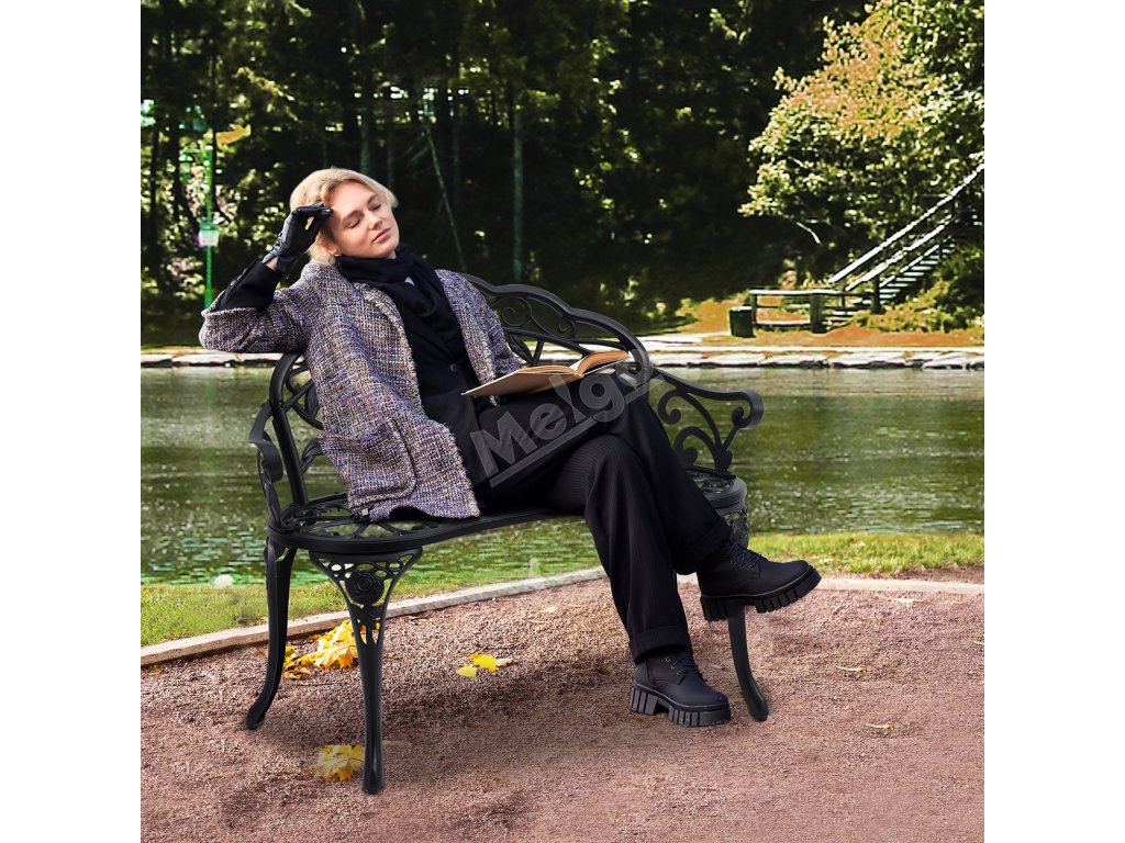 Kovová lavička 38.8 inches nosnost 480 lbs s opěradlem a područkami
