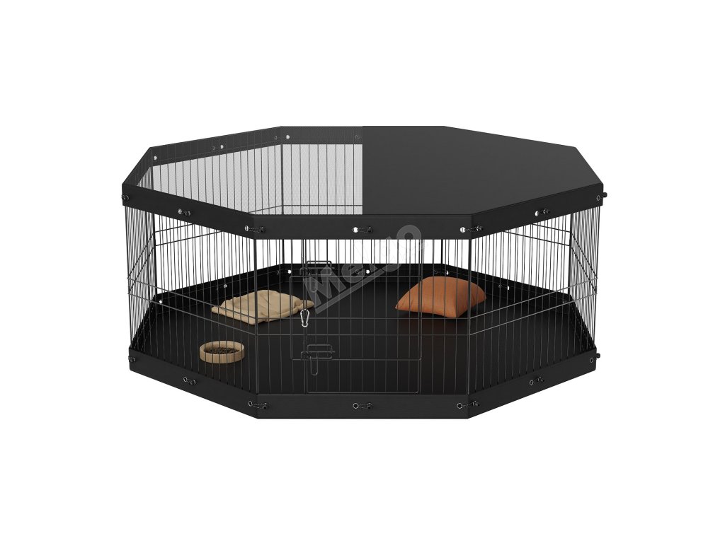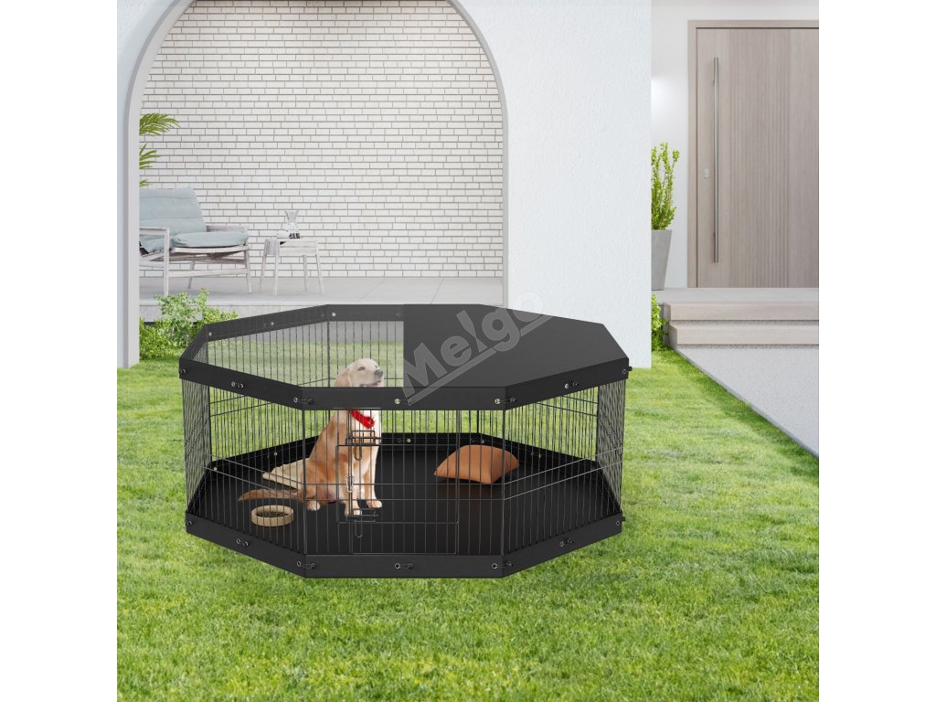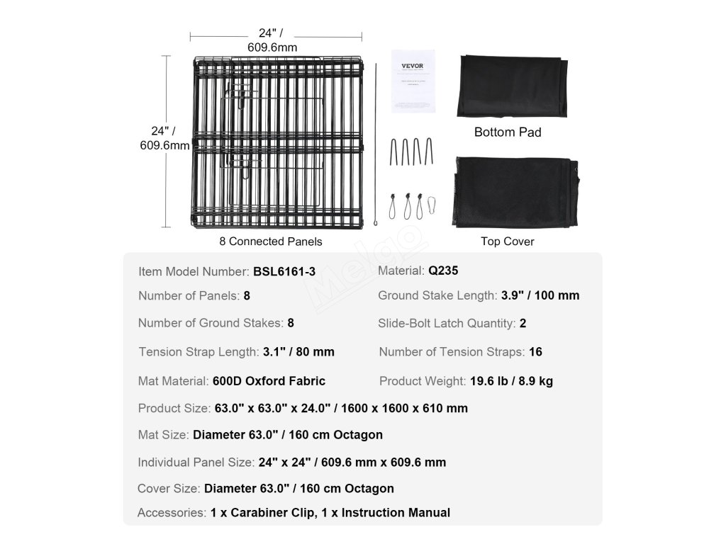 Náš kotec pro psy poskytuje dostatek prostoru díky osmiúhelníkovému tvaru o průměru 63,0". Můžete ji také upravit na obdélník nebo čtverec. Tento prodyšný výběh, který je vhodný pro vnitřní i venkovní použití, ať už je léto nebo zima, poskytuje vašim mazlíčkům prostorný prostor pro hraní nebo útulné útočiště.