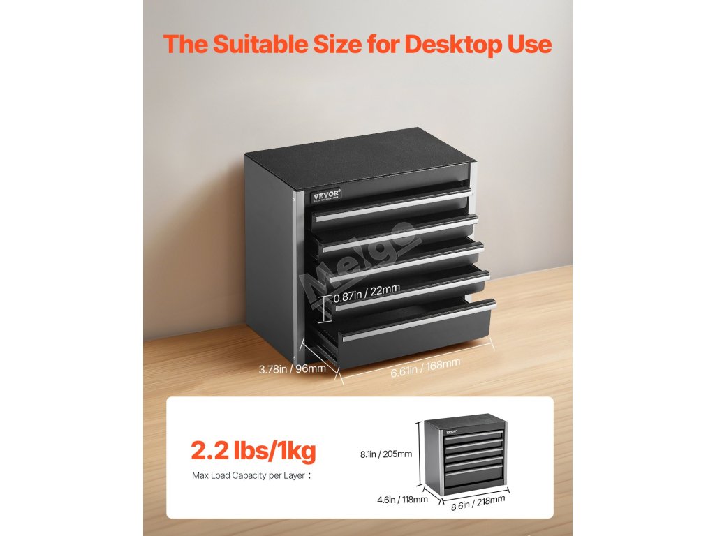 Tento mini kovový box na nářadí s 5 zásuvkami uvnitř vám pomůže udržet pořádek v různých předmětech a udržet váš pracovní prostor čistý a uklizený.