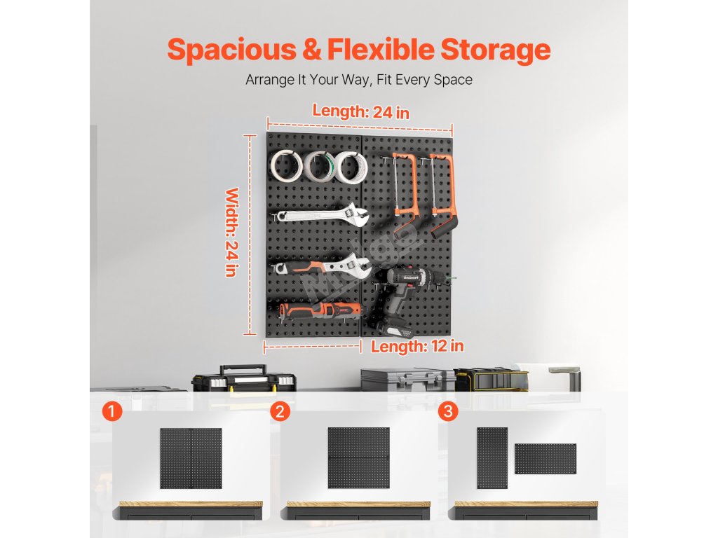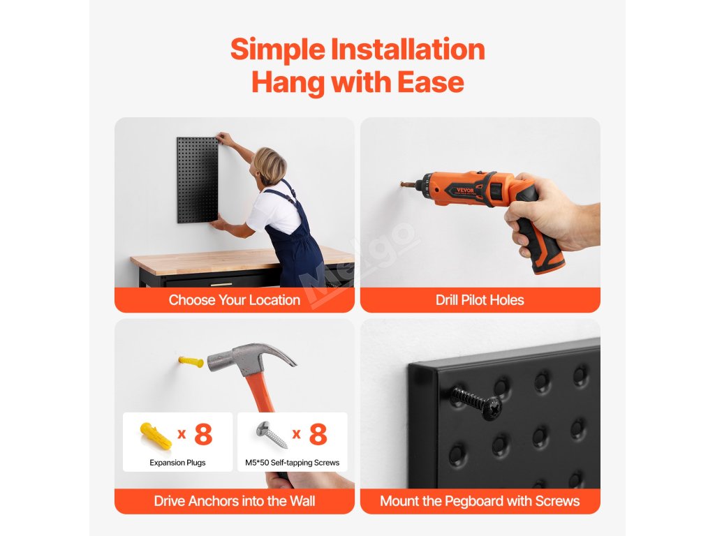 Tato nástěnná závěsná deska se standardními otvory je kompatibilní s celou řadou úložných doplňků. Ať už jde o zavěšení nářadí nebo umístění předmětů, splní všechny vaše potřeby.