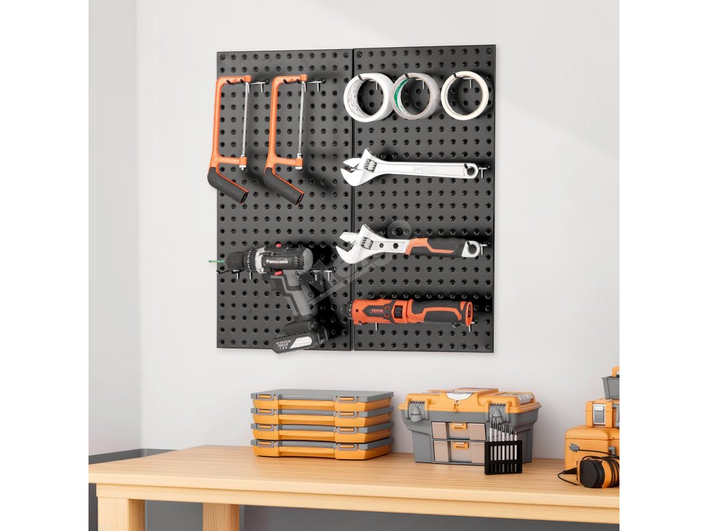 Tato sada kovových kolíčkových panelů je ideální pro různé prostory včetně garáží, železářství a domácích dílen. Je vyrobena tak, aby zvládla velké zatížení, a navržena s ohledem na odolnost, poskytuje flexibilní úložný prostor pro veškeré nářadí a splní vaše rozmanité potřeby v různých pracovních prostředích.