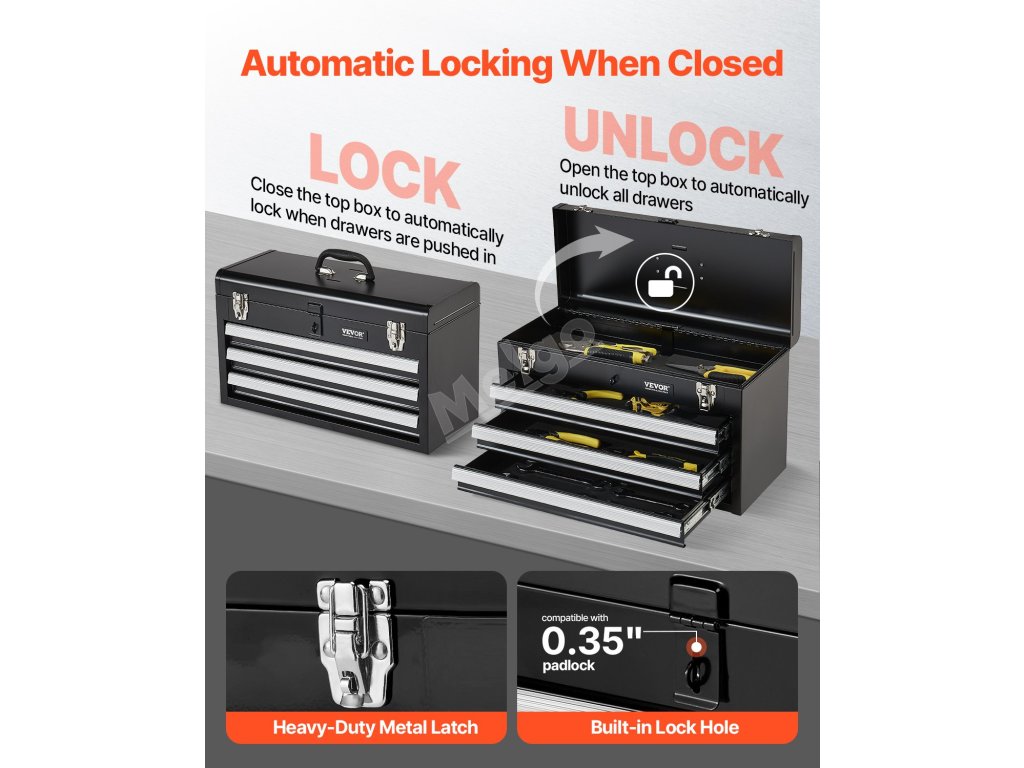 Kovový box na nářadí 20.5-inch, 3 zásuvky, kuličkové pojezdy, zámek