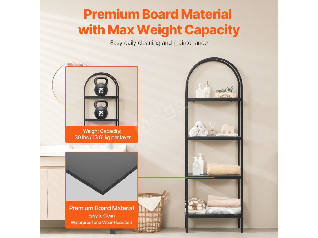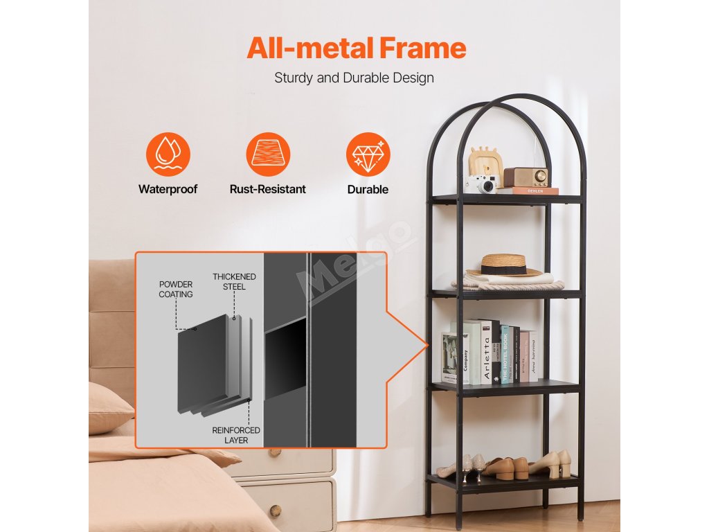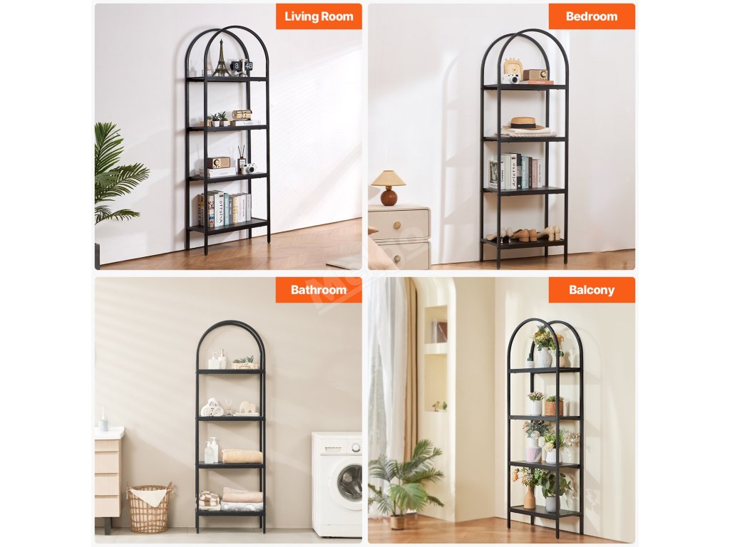 Tento kovový regál má elegantní víceúrovňový design, který maximalizuje prostor a zároveň zůstává robustní a stylový. Hodí se do různých interiérů a funguje jako police na knihy, stojan do koupelny nebo stojan na rostliny. Snadno se sestavuje a dodá šarm a řád každé místnosti!