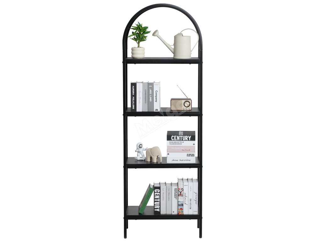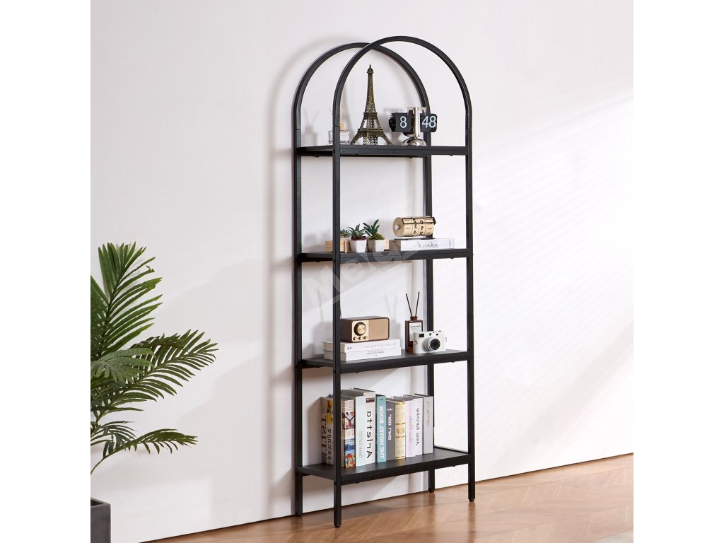 Kovový knižní regál, 4-policový obloukový, otevřené police, volně stojící