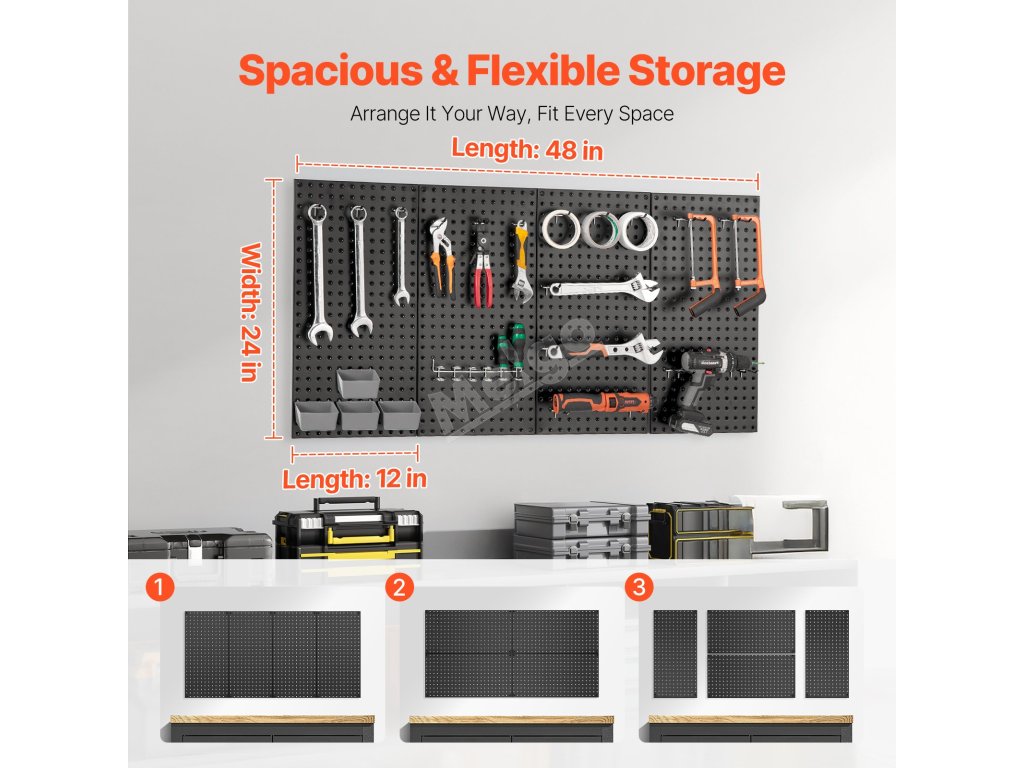 Tato nástěnná závěsná deska se standardními otvory je kompatibilní s celou řadou úložných doplňků. Ať už jde o zavěšení nářadí nebo umístění předmětů, splní všechny vaše potřeby.