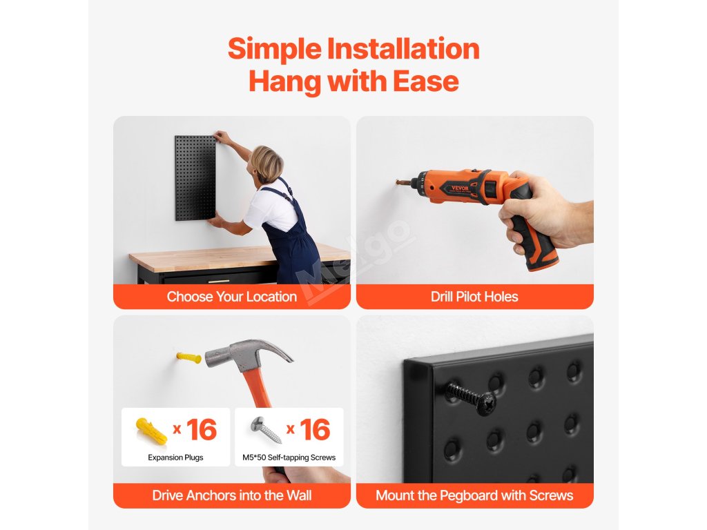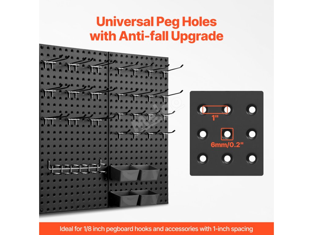 Tato kovová závěsná deska s vynikající nosností zajišťuje stabilitu, ať už věšíte nářadí na opravu auta v garáži nebo vystavujete výrobky v železářství, a poskytuje vám tak klid.