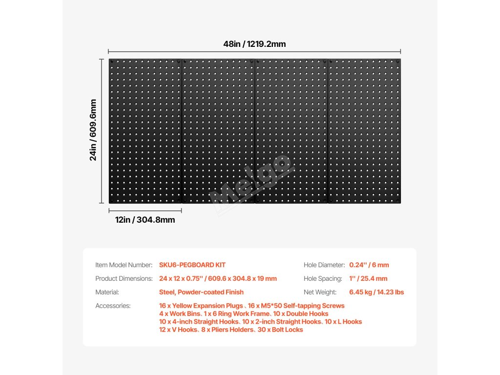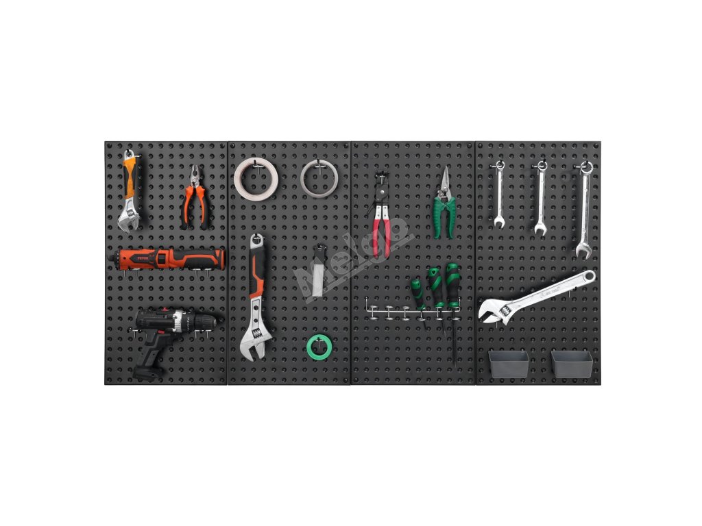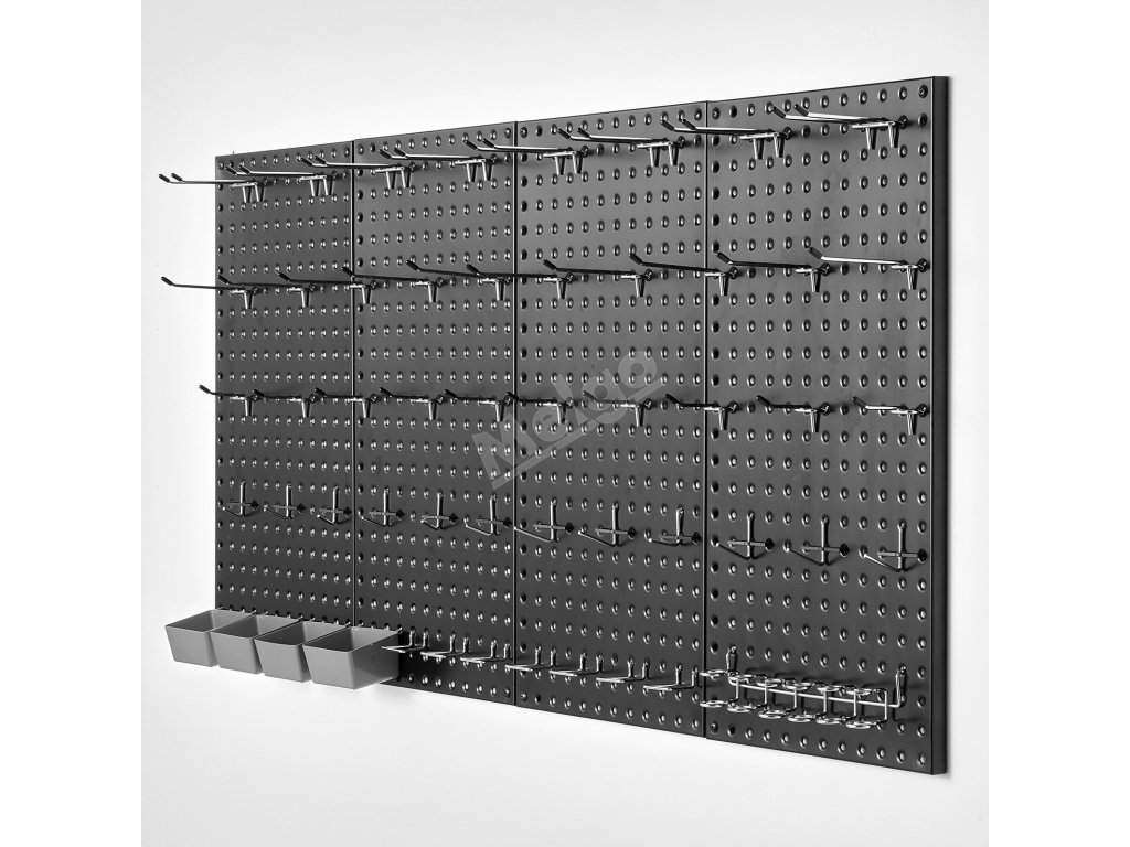 Kovový pegboard panel nástěnný 24"×12" 4 ks černý s příslušenstvím