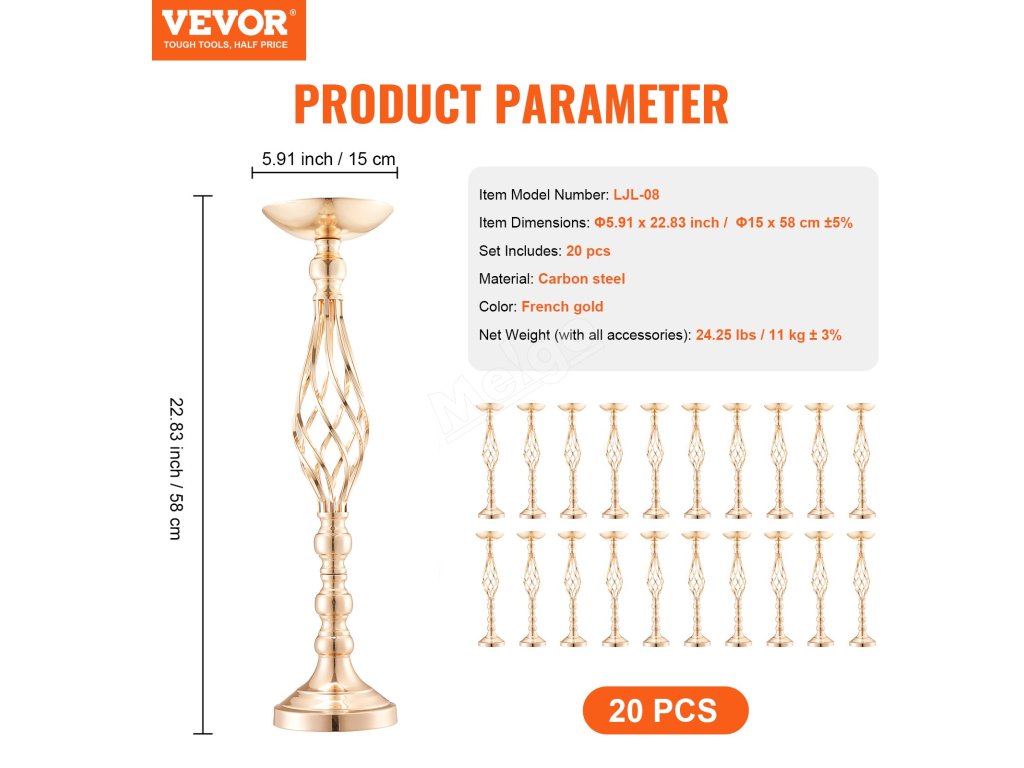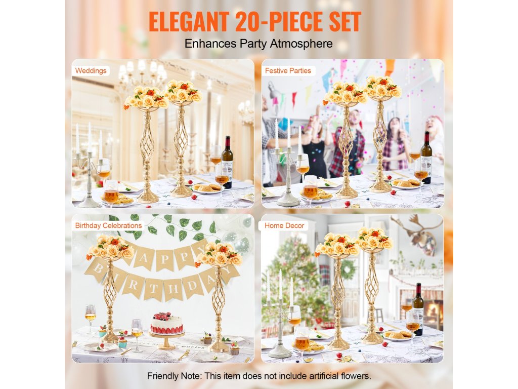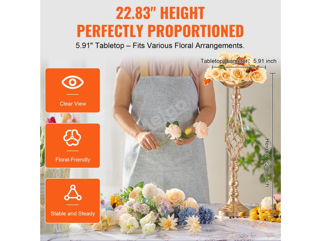 Kovový stojan na květiny 20 ks, výška 58 cm/22.83", zlatý na stůl