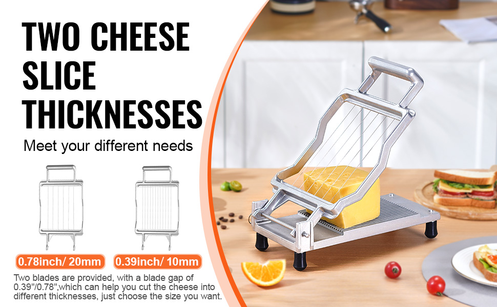 Dodává se se dvěma velikostmi nožů s roztečí 0,39" / 0,78", které umožňují krájet sýr na různé tloušťky podle vašich preferencí.