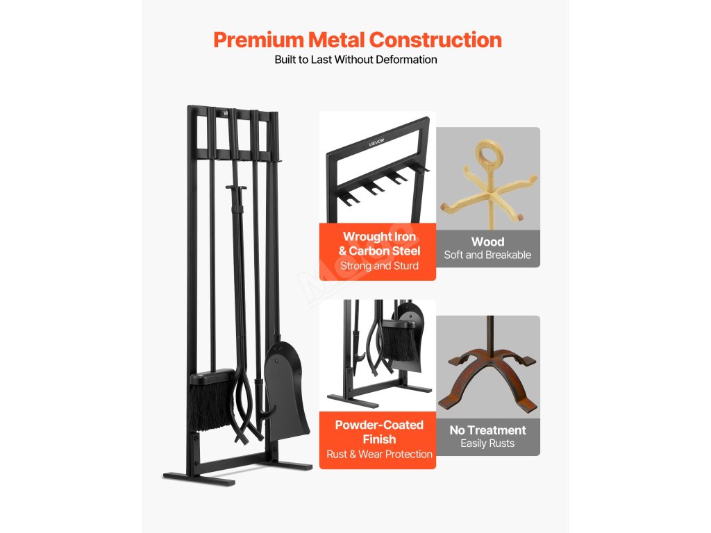 Tato sada krbového nářadí je vyrobena z prvotřídního tepaného železa, uhlíkové oceli a práškového laku a je odolná proti ohybu, korozi a vysokým teplotám, což zajišťuje dlouhou životnost. Ergonomické prodloužené rukojeti poskytují pohodlné uchopení odolné vůči vysokým teplotám, které je nezbytnou pomůckou při používání krbu.