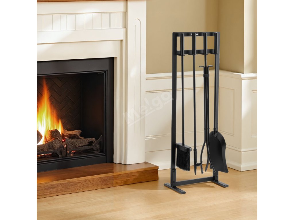 Díky pevnému a kvalitnímu stojanu, stabilním hákům a odolné základně udrží toto krbové nářadí každý kus bezpečně na svém místě. Robustní konstrukce zajišťuje, že nářadí zůstane přehledně uspořádané a snadno přístupné.