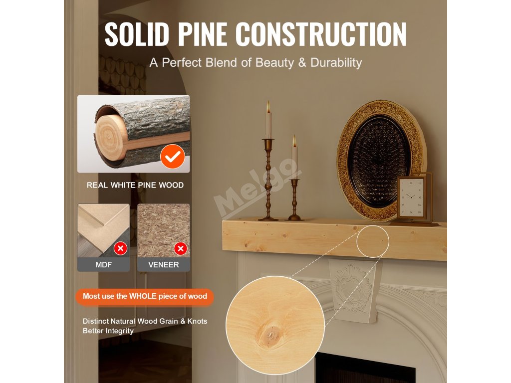Naše krbová police vyrobená z pravého bílého borovicového dřeva dokonale kombinuje estetiku a odolnost.