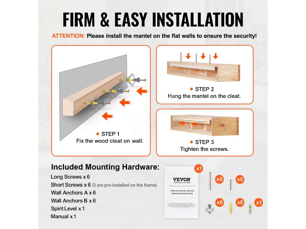 Pro bezpečnou a snadnou instalaci se ujistěte, že je dřevěný plášť připevněn k rovným stěnám. Součástí balení je veškerý potřebný montážní hardware, který usnadňuje proces nastavení a zajišťuje pevnou instalaci.