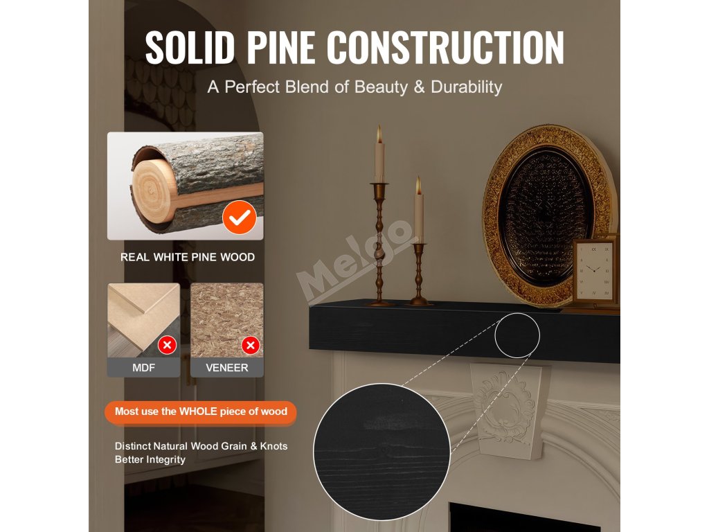 Naše krbová police vyrobená z pravého bílého borovicového dřeva dokonale kombinuje estetiku a odolnost.