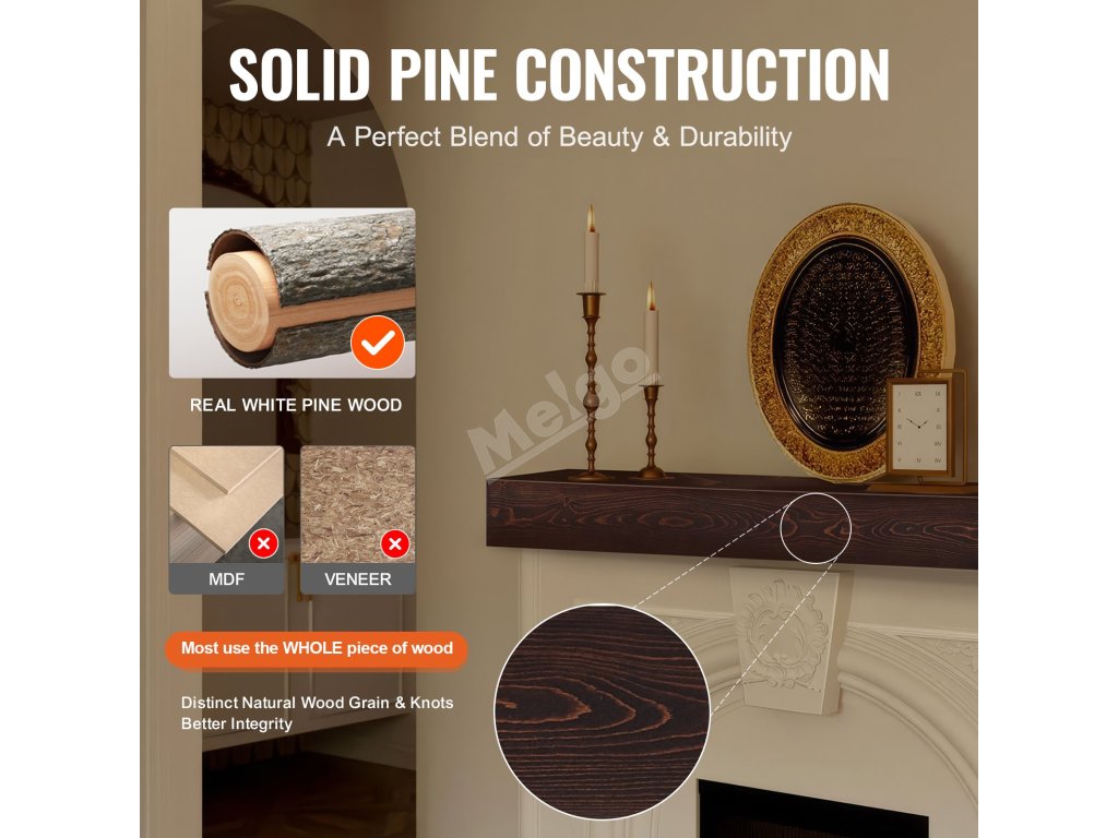 Naše krbová police vyrobená z pravého bílého borovicového dřeva dokonale kombinuje estetiku a odolnost.
