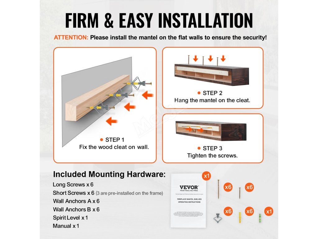 Pro bezpečnou a snadnou instalaci se ujistěte, že je dřevěný plášť připevněn k rovným stěnám. Součástí balení je veškerý potřebný montážní hardware, který usnadňuje proces nastavení a zajišťuje pevnou instalaci.