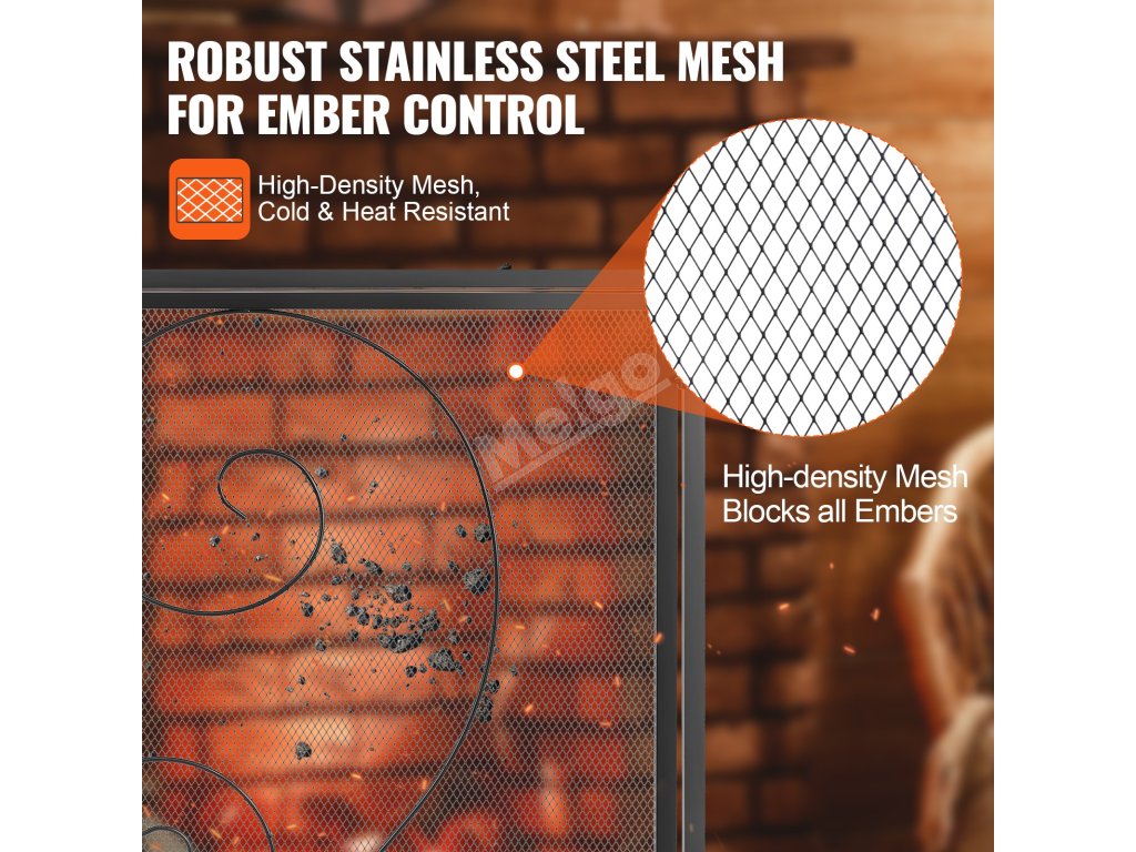 Mikrorozšířená konstrukce se hodí pro různé velikosti krbů a zajišťuje lepší pokrytí. Obdélníkové trubkové nohy v držácích zajišťují rovnoměrné rozložení zátěže. Odolná síť z nerezové oceli s otvory s vysokou hustotou zvyšuje bezpečnost.