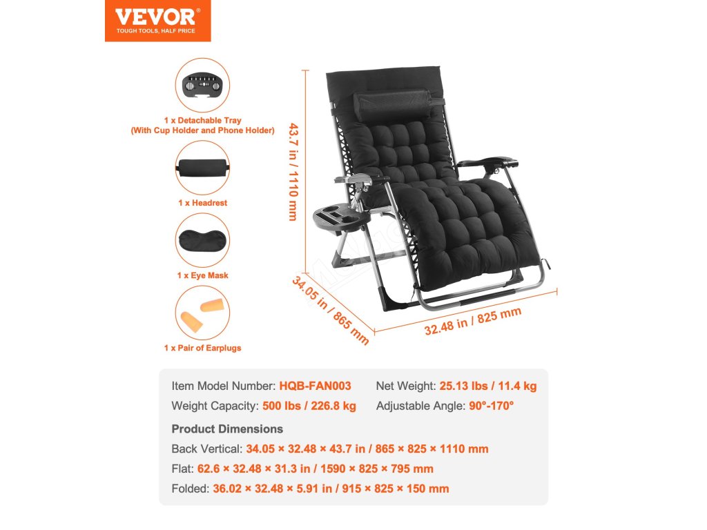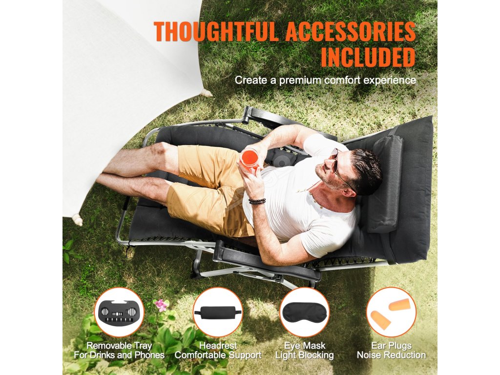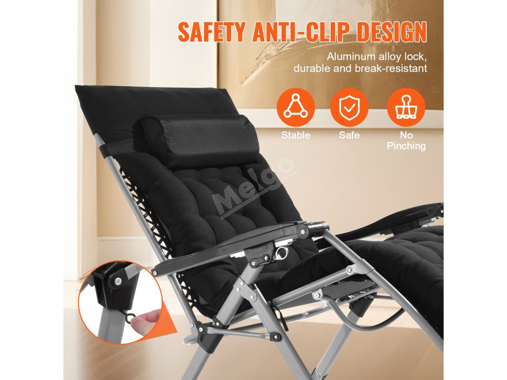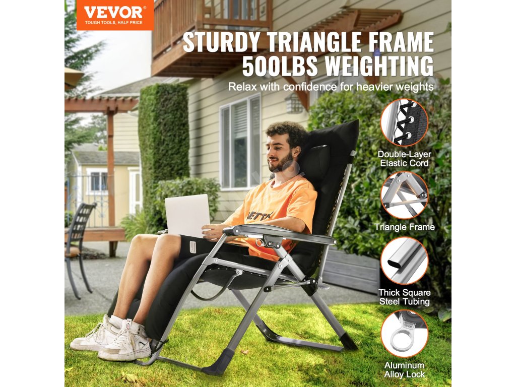 Křeslo zero gravity 33 inch, nastavitelné, s polštářem, 500 lbs, černá