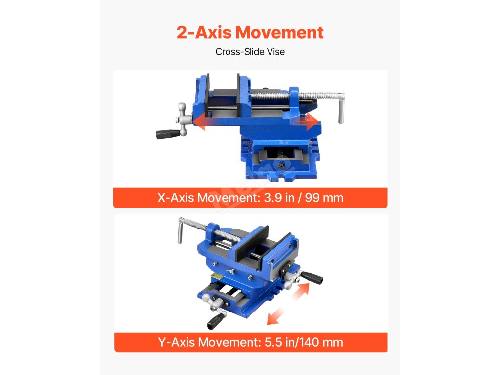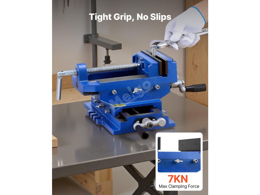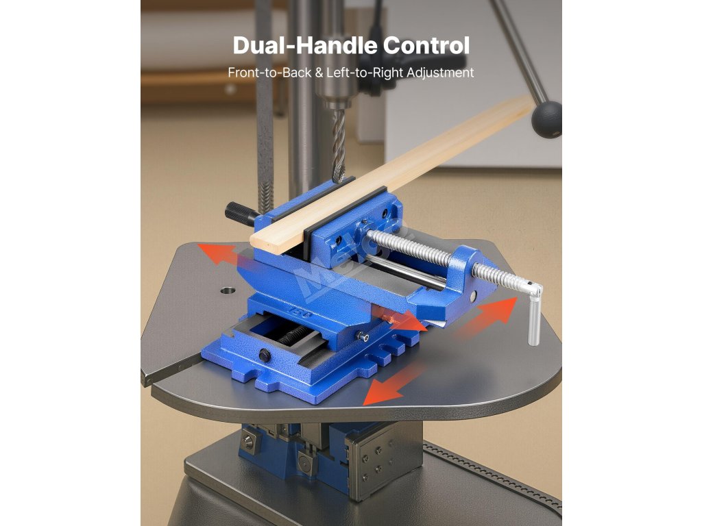 Svěrák s křížovým posuvem má křížový posuv s hladkými rukojeťmi, které umožňují přesný pohyb vpřed/vzad a doleva/doprava. Každá rukojeť se ovládá nezávisle, což umožňuje přesné polohování, vhodné zejména pro jemné obrábění dílů a práci s detaily.