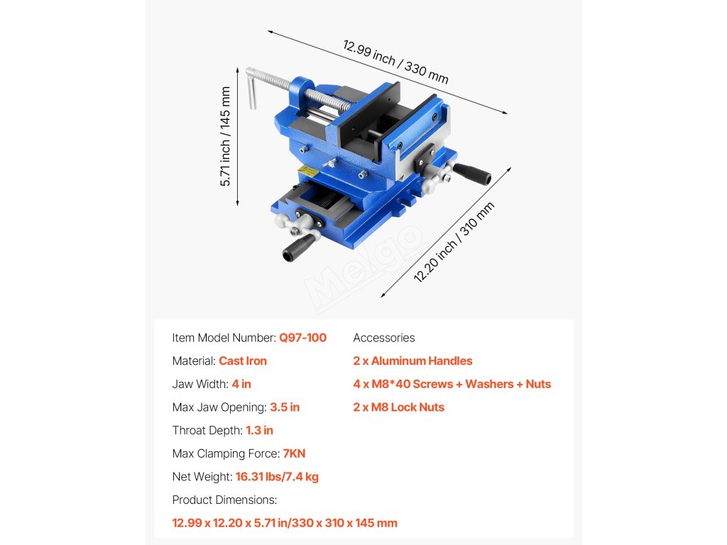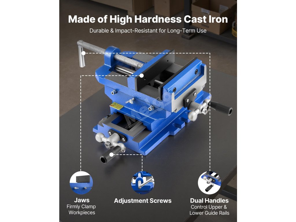 Tento křížový svěrák je vyroben z vysoce pevné litiny a umožňuje přesné nastavení ve dvou osách X/Y. Jeho dvě rukojeti umožňují plynulý horizontální a vertikální pohyb. Ideální pro frézky, vrtačky a další zařízení.