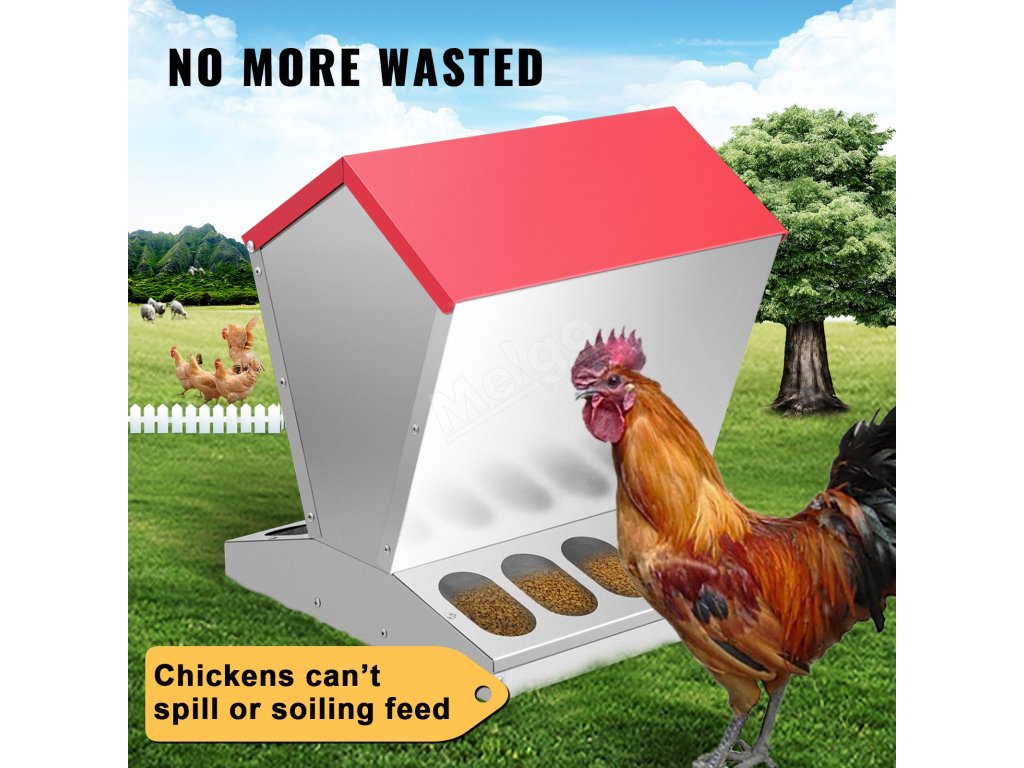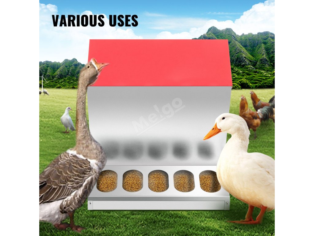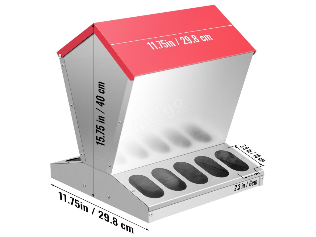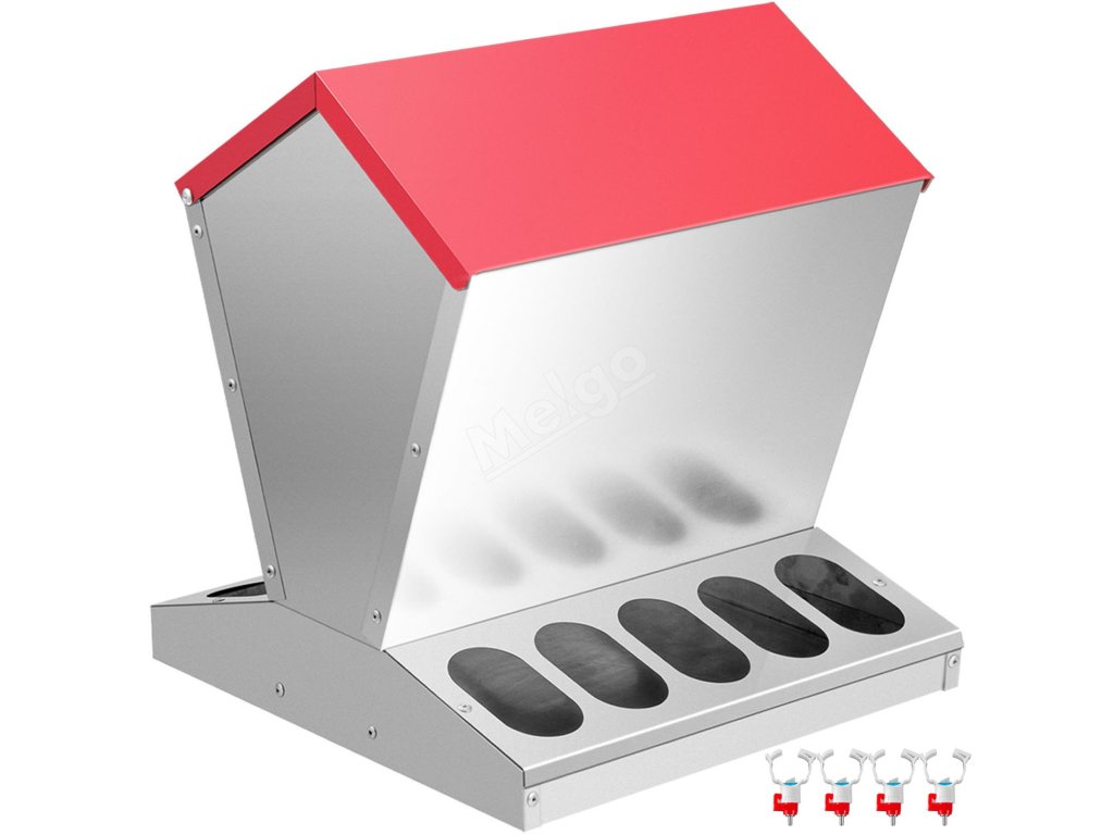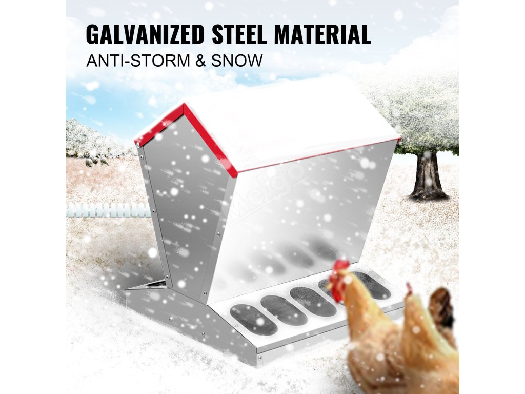 Naše pozinkované krmítko pro drůbež je vyrobeno z pozinkované oceli, kterou lze používat po dlouhou dobu. Můžete jej umístit venku bez obav z deště nebo sněhu.