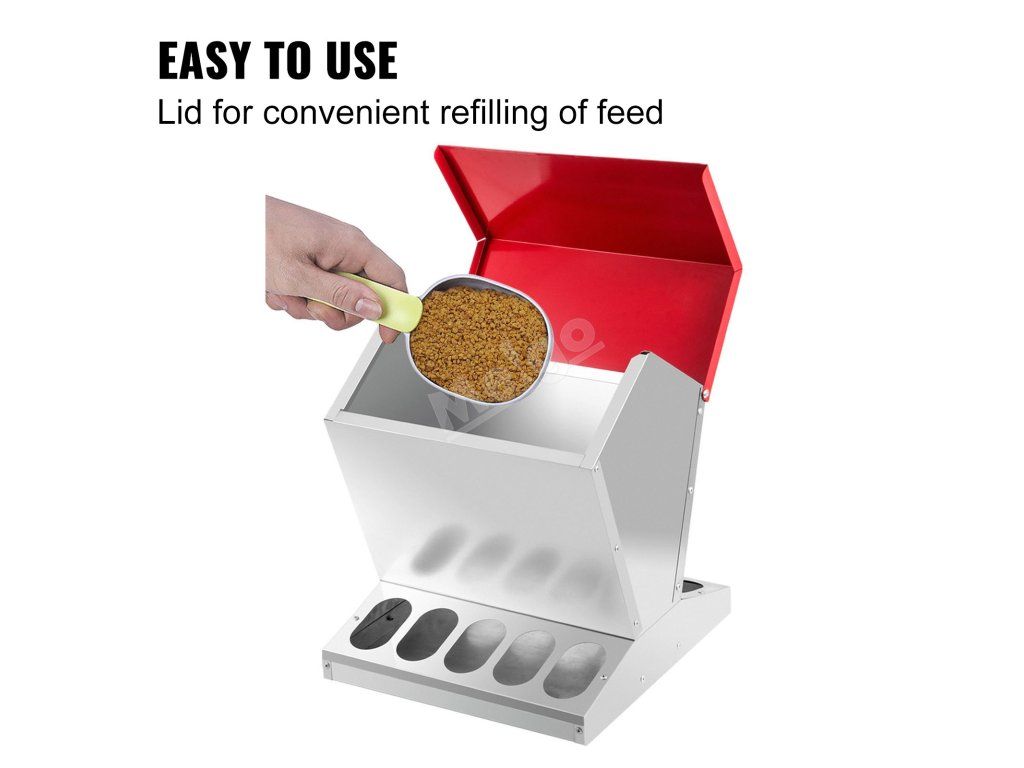 Krmítko pro kuřata s ochranným víkem se hojně používá u kuřat, kachen, holubů a hus. Je vhodné i pro venkovní použití a nemusíte se o něj vůbec starat.