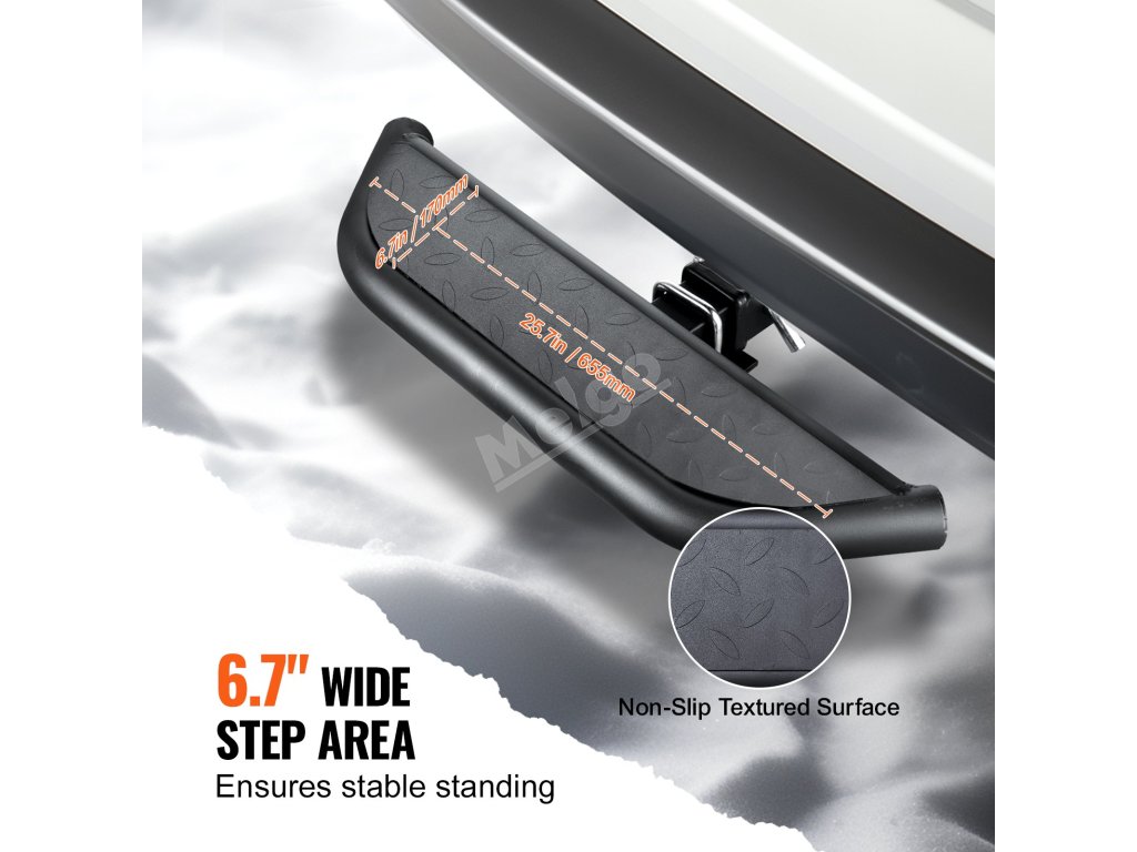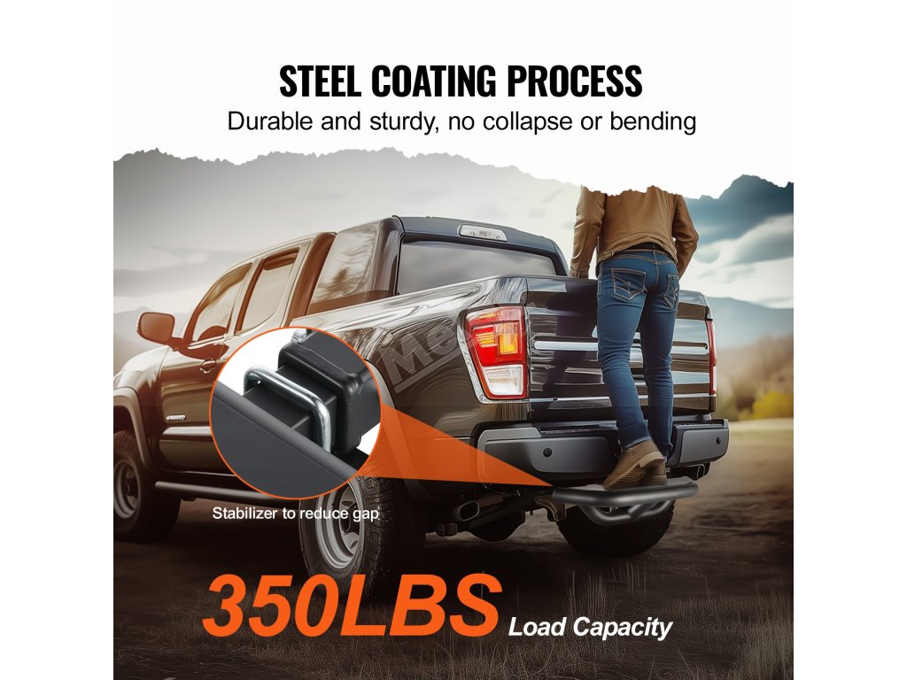 Náš záclonový schůdek slouží jako pevná ochranná bariéra zadní části vozidla, která tlumí většinu nárazů, tlumí náraz vozidla a snižuje riziko vážnějších zranění vás i vašich cestujících. Funguje také jako spolehlivá opora při stoupání, takže si můžete bez obav užívat každou cestu.