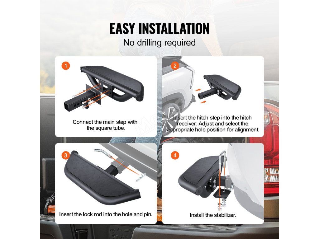 Náš závěsný schod má propracovanou konstrukci s vynikající kompatibilitou, díky které se dá přizpůsobit různým vozidlům. Ať už řídíte SUV, terénní dobrodružné vozidlo nebo rodinný cestovní vůz, jeho instalace je snadná a perfektně sedí, čímž zvyšuje užitnou hodnotu i bezpečnost vašeho vozidla.