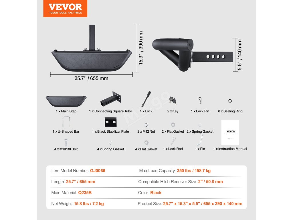 Díky povrchové úpravě oceli nabízí náš stupátko na vozík dlouhou životnost a odolnost proti korozi a rzi. Odolává povětrnostním vlivům, čímž zajišťuje dlouhotrvající výkon v různých prostředích. Unese až 350 kg a zůstává pevný, aniž by se ohýbal nebo prohýbal.
