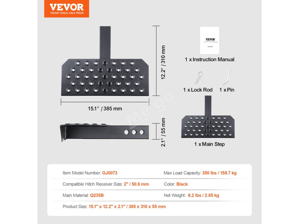 Krok na 2 Inch přijímač z oceli, nosnost 350 LBS, s pojistným čepem