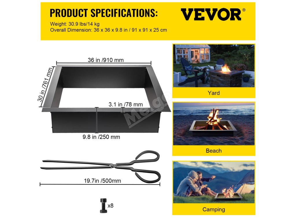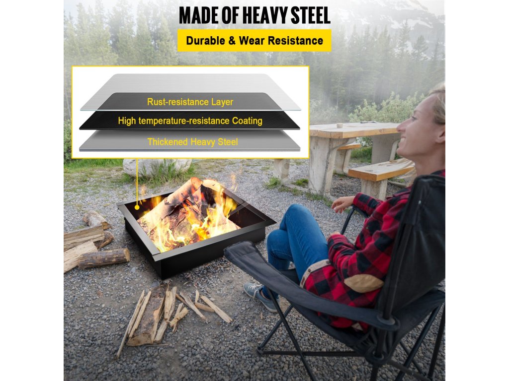 Velký čtvercový krbový prstenec o rozměrech 30 x 30 palců pojme více dřevěného uhlí a dřeva, čímž řeší problém častého přikládání dřevěného uhlí a napomáhá růstu ohně.