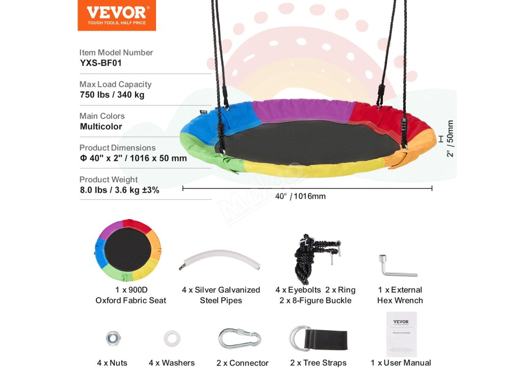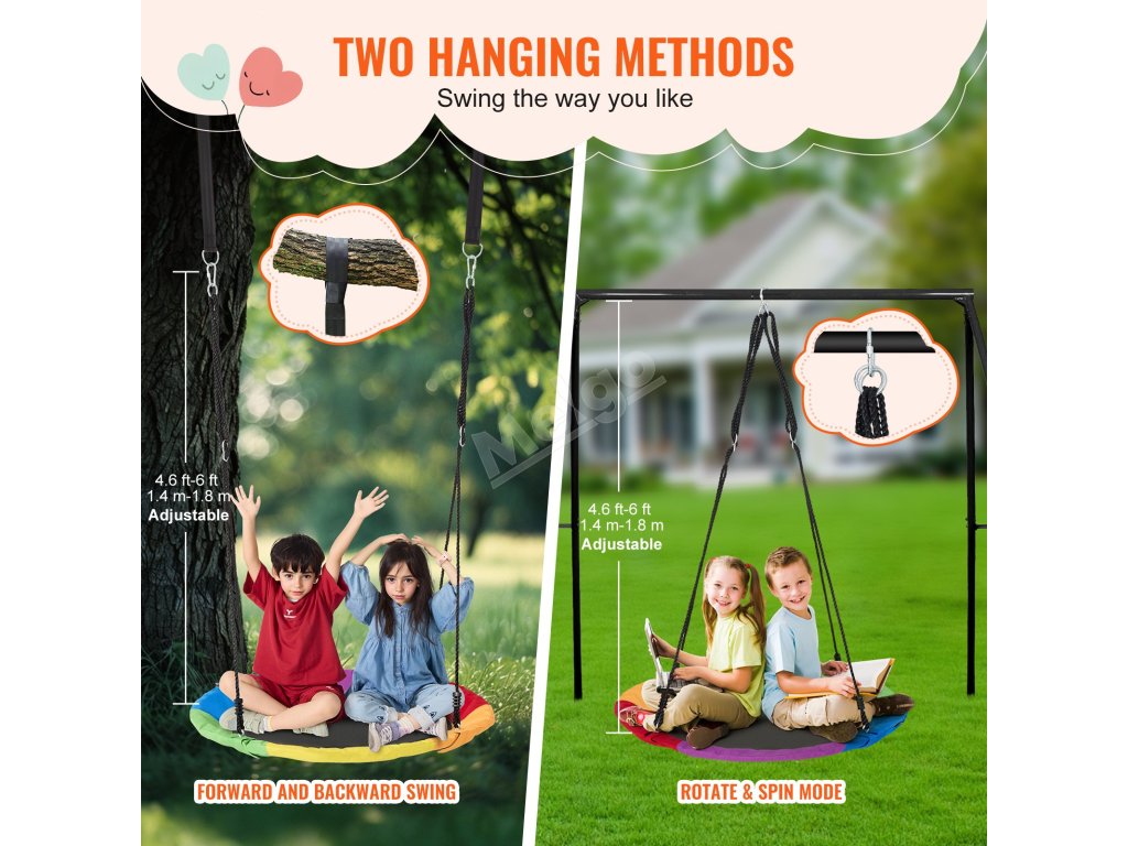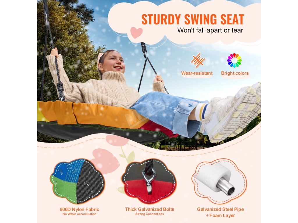 Kruhová houpačka 40 inch, nosnost 750lbs, 900D, 2 popruhy, pro děti