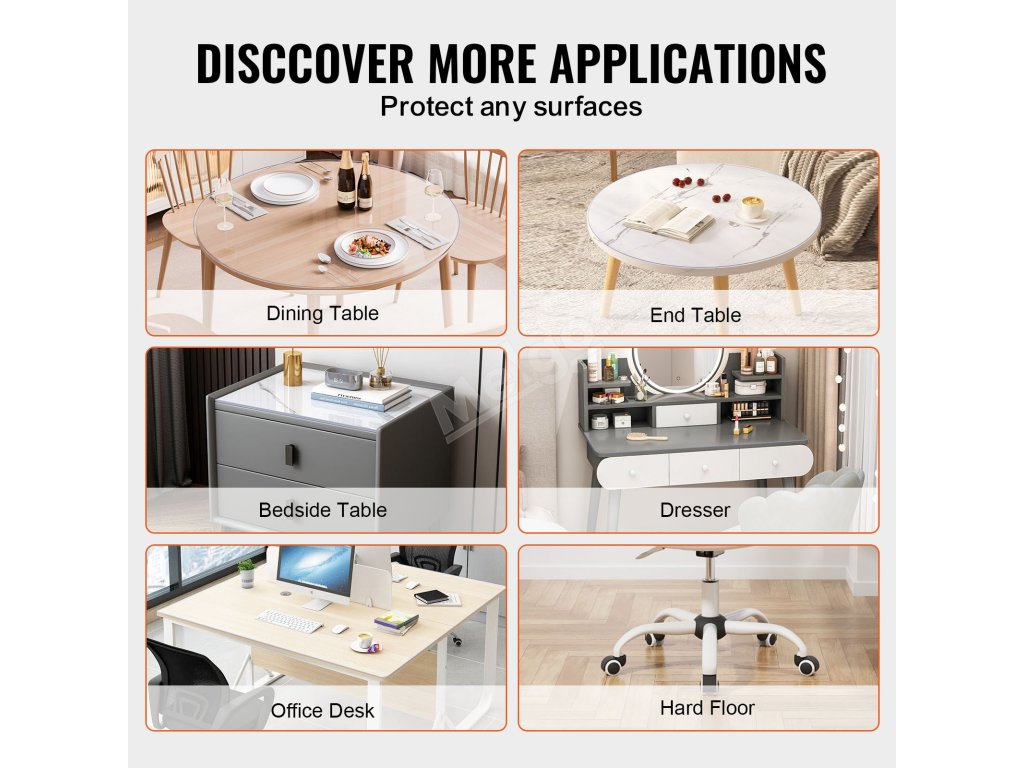 Náš průhledný chránič stolu poskytuje vynikající ochranu a zlepšuje estetiku vašeho stolu. Poznejte dokonalost vysoce kvalitních, měkkých a hladkých materiálů, které jsou vyrobeny tak, aby vydržely, a snadno se čistí. Ať už se jedná o jídelní stůl, kuchyňskou linku, pracovní stůl nebo o podložku pod podlahu či spotřebič.