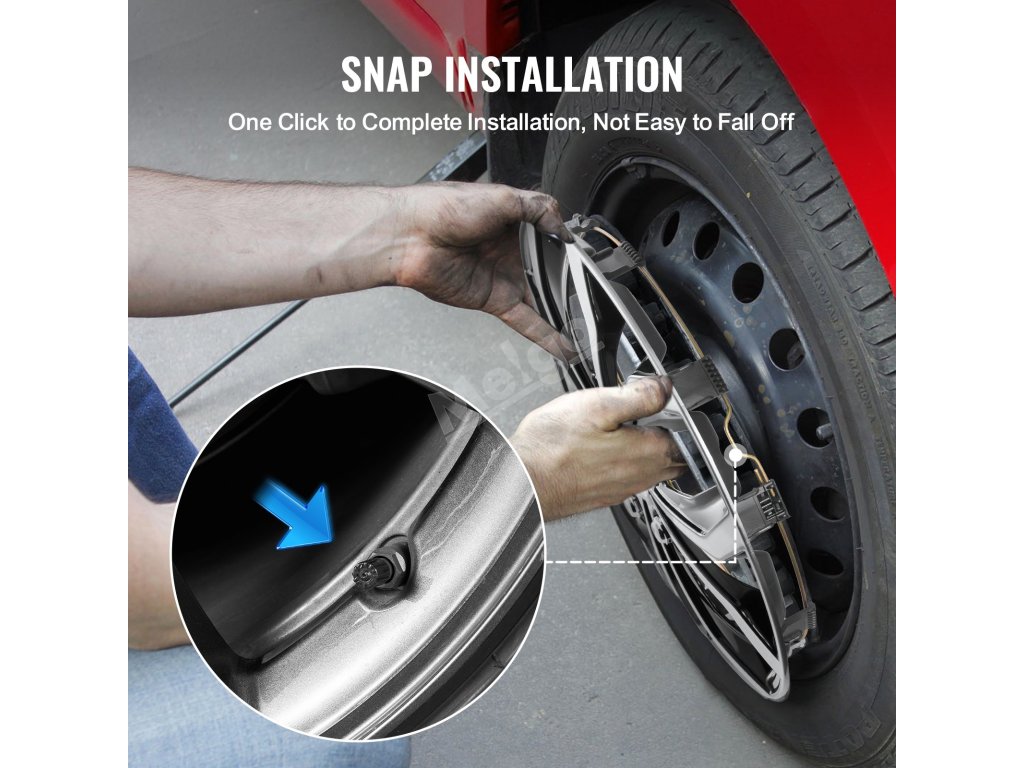 Instalace je snadná - stačí zarovnat a zatlačit! Díky klipovému provedení krytů ráfků kol jsou kryty kol bezpečné i na nerovných cestách.